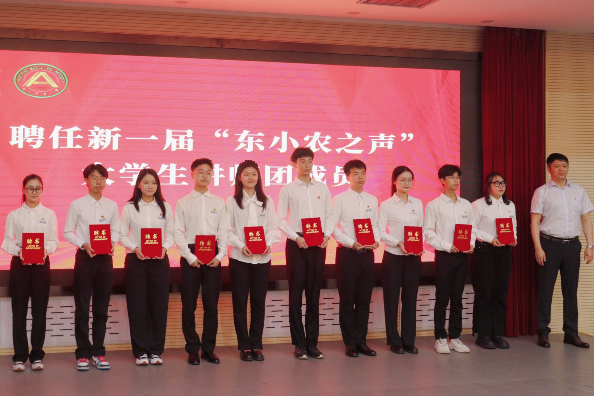 李卡为新一届“东小农之声”大学生讲师团成员颁发聘书