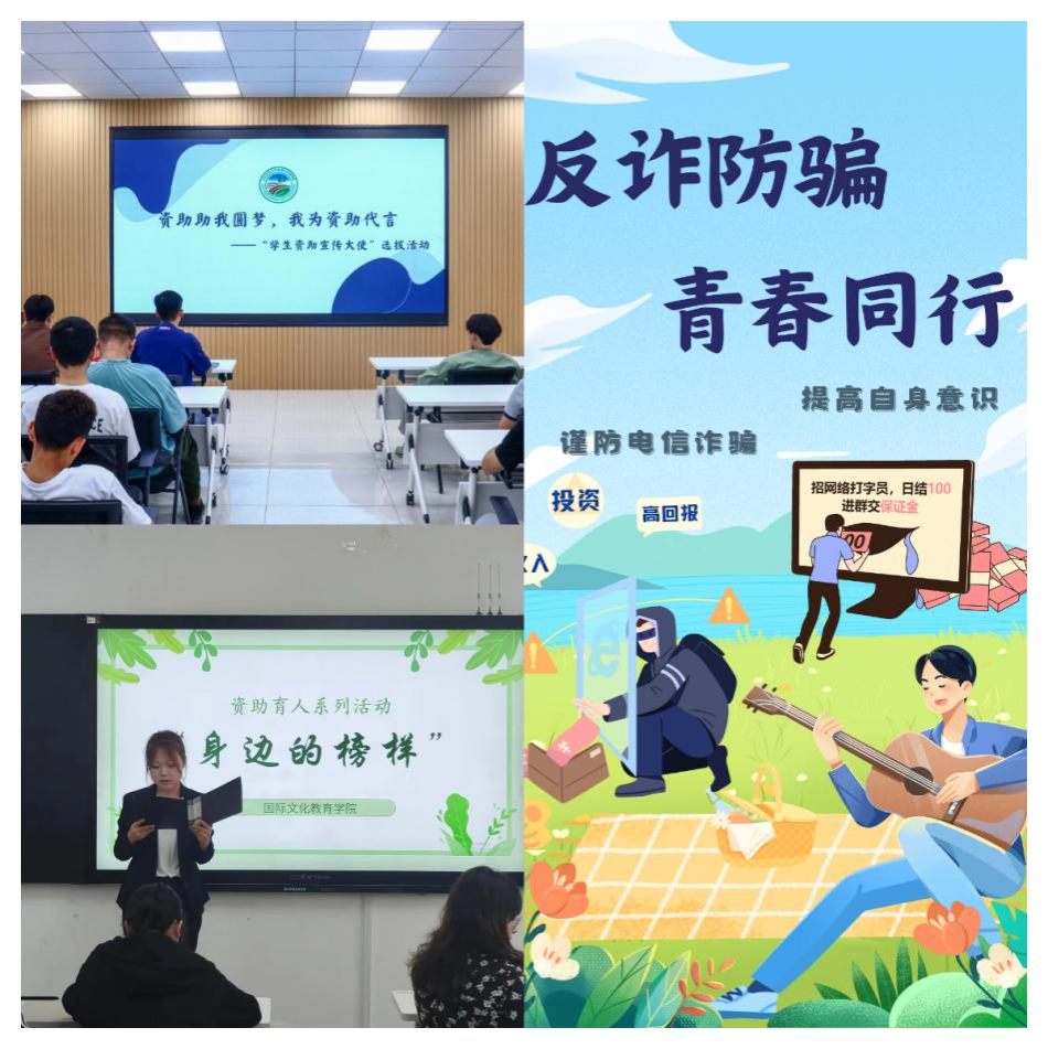各学院高度重视,积极开展特色资助育人活动。生命科学学院、经济管理学院、园艺园林学院将学生资助工作与思想政治工作紧密结合,发挥朋辈榜样的引领作用,举办优秀学生事迹宣讲会,邀请国家励志奖学金获得者讲述成长奋斗故事,充分发挥受助学生榜样传播与励志引领作用。资源与环境学院、艺术学院、国际文化教育学院采取学生喜闻乐见的方式,开展“资助助我圆梦,我为资助代言—学生资助宣传大使”选拔、“反诈防骗 青春同行”主题海报设计大赛、“防范于心,反诈于行”主题设计大赛等资助育人活动,提升资助政策宣传实效。动物医学学院、水利与土木工程学院对全体受资助学生加强感恩励志教育,开展“爱校如家,三化校园”公益劳动,常态化践行感恩教育,增强受资助学生爱校荣校意识。电气与信息学院、公共管理与法学院、文理学院以学生毕业教育为契机,开展毕业生诚信教育主题班会,为毕业生及国家助学贷款办理学生进行专题培训。植物保护学院、马克思主义学院、工程学院举办“诚铸青春,信远未来”征信知识竞赛、诚信教育”主题征文、“反诈防骗,青春同行”主题演讲比赛、“立志成才,感恩奉献”主题学习班会,将资助教育、诚信教育和反诈骗教育等融合在一起,大力提升学生感恩意识、征信意识、金融意识、法律意识。食品学院、农学院举办爱心赠书活动,号召全体毕业生进行书籍捐赠,帮助有需要的低年级家庭经济困难学生,书籍传递的温暖被具象化,传递知识和爱的火炬。
