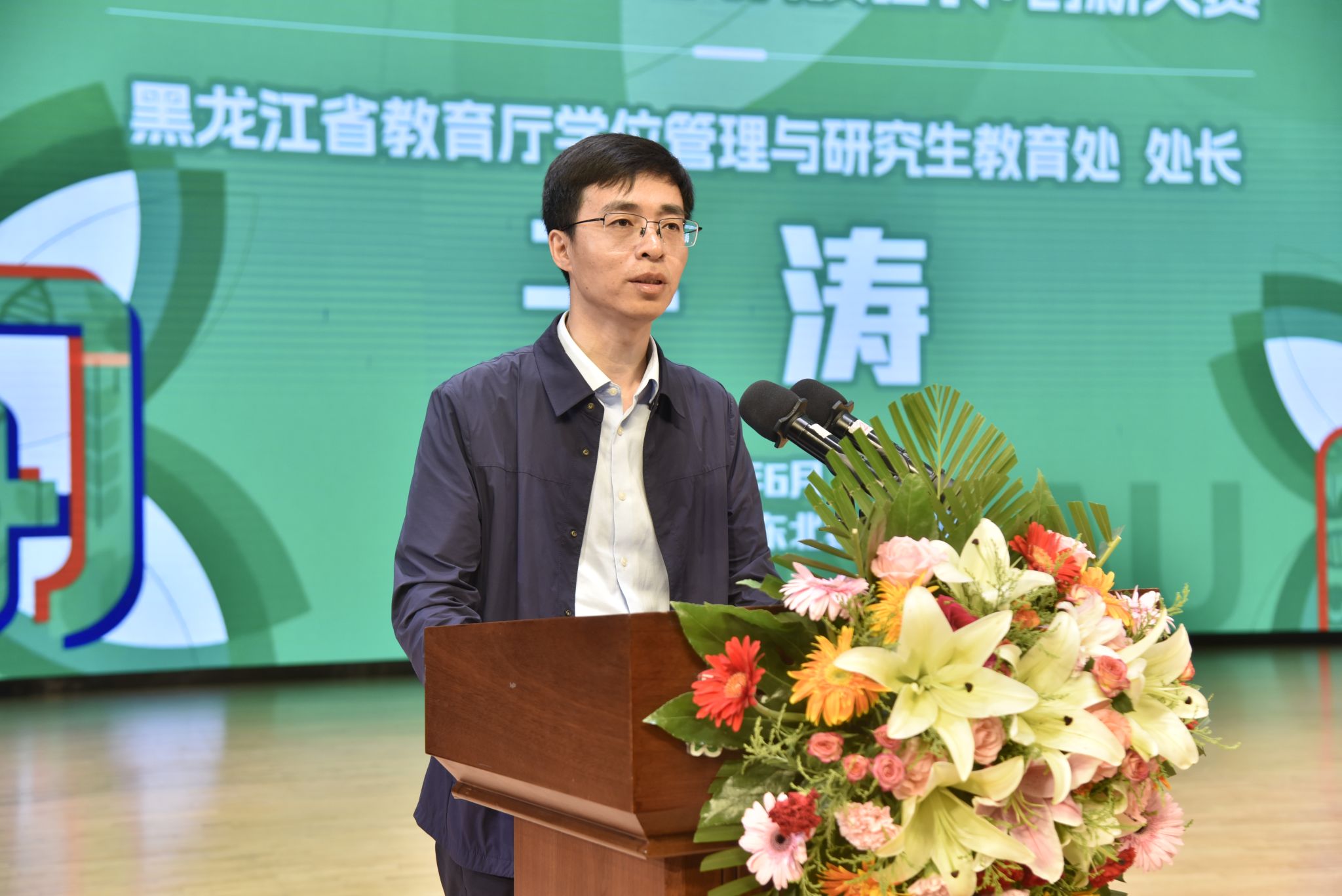 于涛代表省教育厅对东北农业大学以赛事推进为契机组织召开本次推介大会表示肯定,对今年哈尔滨工程大学和东北农业大学分别承担大赛主题赛事表示鼓励。他指出,大会的召开为政府及企业助力在哈高校协同办赛提供了交流互动平台,也为各高校提高参赛办赛意识、提升研究生创新实践能力提供了机会,为大赛的整体宣传和推广提供了东农智慧和实践。他指出,近年来我省多所高校分别牵头承办或积极参加了中国研究生创新实践系列大赛,成绩可圈可点,但总体在大赛的参与度和整体贡献力方面与其他省份高校相比仍然不足。他强调,各高校要充分利用大赛平台,积极争取政府及行业企业资源,提高创新实践意识,以提升研究生教育质量为核心,优化顶层设计、加强宣传动员,精心组织研究生参与大赛,引导研究生围绕国家战略需求,努力攻关“卡脖子”技术难题,为培养新时代需要的高水平拔尖创新人才贡献龙江力量。