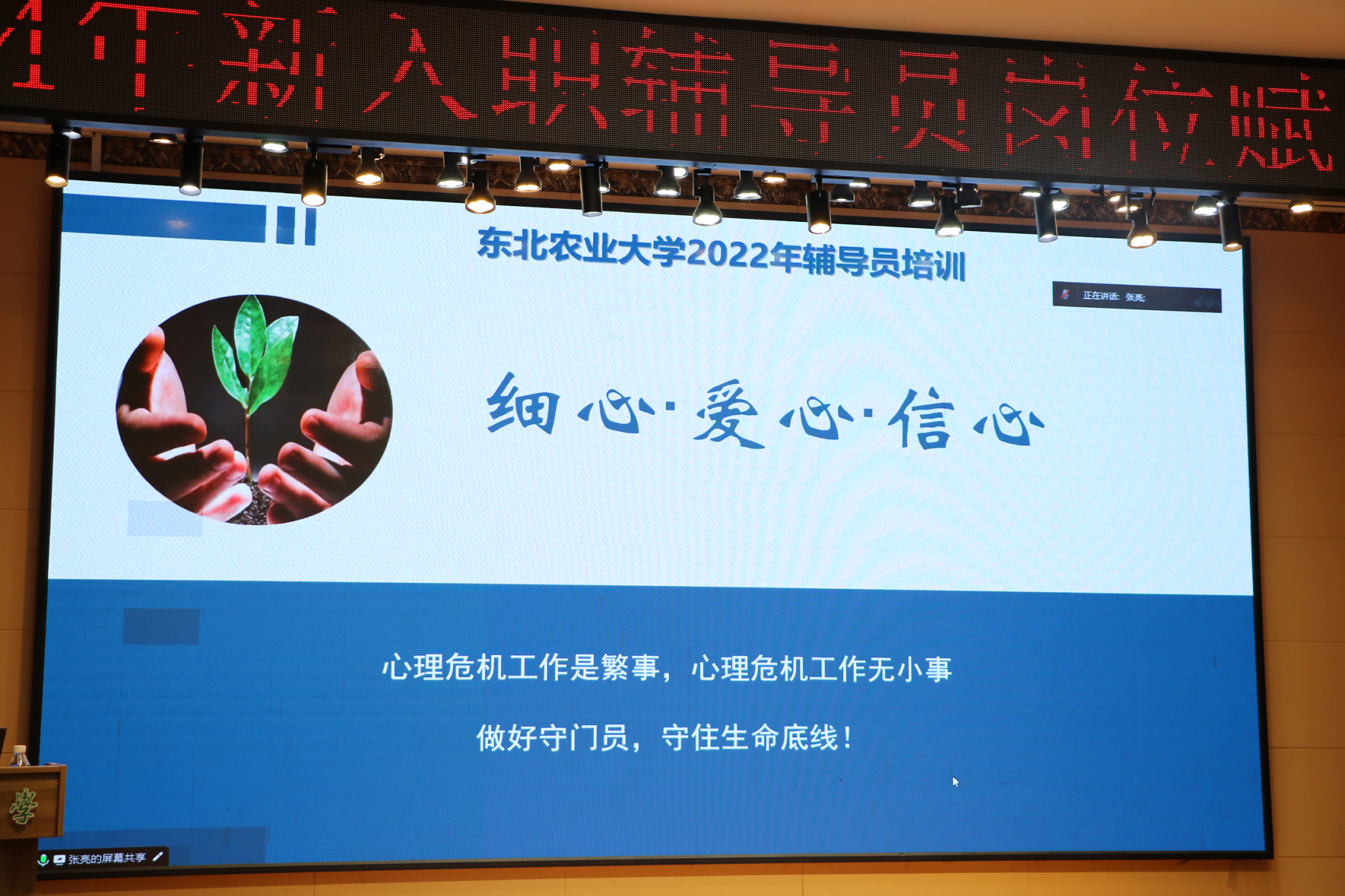 第十三届全国高校辅导员年度人物提名奖获得者,生命科学学院党委副书记孙珠红作题为《新入职辅导员的角色转变与工作方法》首场专题报告,结合多年工作经历,从树立良好自身形象、提升干事创业本领、助力学生成长成才等方面与新入职辅导员交流分享。学生工作部学生资助管理与发展中心主任李晓宇、学生教育科科长杨俊静、队伍建设科科长付婧一、学生管理科李镇童先后结合岗位工作要求,从学生思想引领、资助育人、队伍建设、安全稳定、社区育人等方面作专题业务培训。心理健康教育中心主任张亮、劳动教研室主任魏贵生,围绕大学生心理危机的预防与干预、辅导员课程教学的规范与要求进行了案例分析和流程详解。组织部党建科科长张杨围绕夯实党务工作基础,提升学生党建工作水平、学习党纪知识作专题辅导。校团委宣传教育科科长石波罗、组织建设科科长魏天赋,分别结合基层团组织建设、社会实践、志愿服务等团务工作作业务培训。招生就业处市场科科长房丹丹就生涯辅导在就业工作中的意义和价值与新入职辅导员做业务交流。