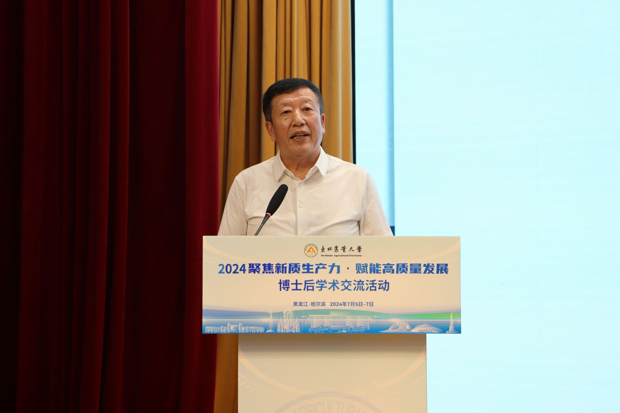 7月5日至7日,由全国博士后管委会办公室、中国博士后科学基金会指导,黑龙江省人力资源和社会保障厅主办,东北农业大学承办的2024年“聚焦新质生产力· 赋能高质量发展”博士后学术交流活动在东北农业大学成功举办。本次活动是今年全国38场博士后学术交流活动之一,活动以“加快形成农业新质生产力,推动农业农村现代化建设高质量发展”为主题,特邀院士、专家学者齐聚龙江探讨热点问题,为加快形成农业领域新质生产力建言献策,推动博士后人才队伍在基础科研、技术开发、创新创业等各方面发挥生力军作用。本次活动设置了1个主论坛和5个分论坛。