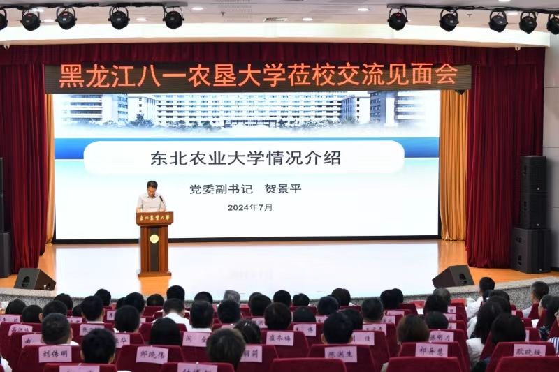 贺景平首先对黑龙江八一农垦大学一行的到来表示热烈欢迎,对两校多年来守望相助、携手并进的情谊给予高度肯定,并介绍了东北农业大学基本情况及党建和思想政治、“双一流”建设、人才培养、师资队伍建设、科技创新、社会服务、国际交流合作、校园文化建设等方面工作开展情况。