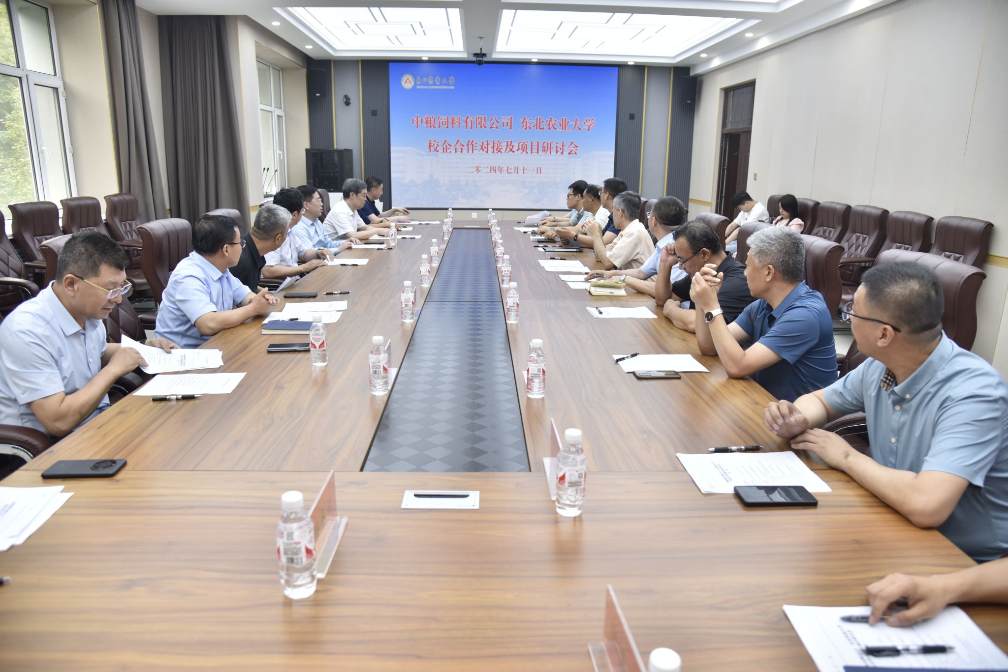 7月11日,中粮饲料有限公司总经理董顺钢一行到学校开展校企合作对接洽谈。中粮饲料有限公司副总经理焦国强,总经理助理、华北大区总经理张顺心,技术顾问宋金彩,中粮饲料呼和浩特市、衡水市和银川市区域总经理,中粮东大(黑龙江)饲料科技有限公司和哈尔滨东大牧业有限公司负责人参加调研考察。东北农业大学副校长孙占峰,电气与信息学院行政负责人戴百生,生命科学学院行政负责人李杰,社会合作与成果转化中心(新农村发展研究院)副主任(副院长)宋珲,电气与信息学院苏中滨教授、沈维政教授,动物科学技术学院张永根教授及其相关工作人员参加调研活动。座谈交流会在电信学院219会议室召开,会议由戴百生主持。