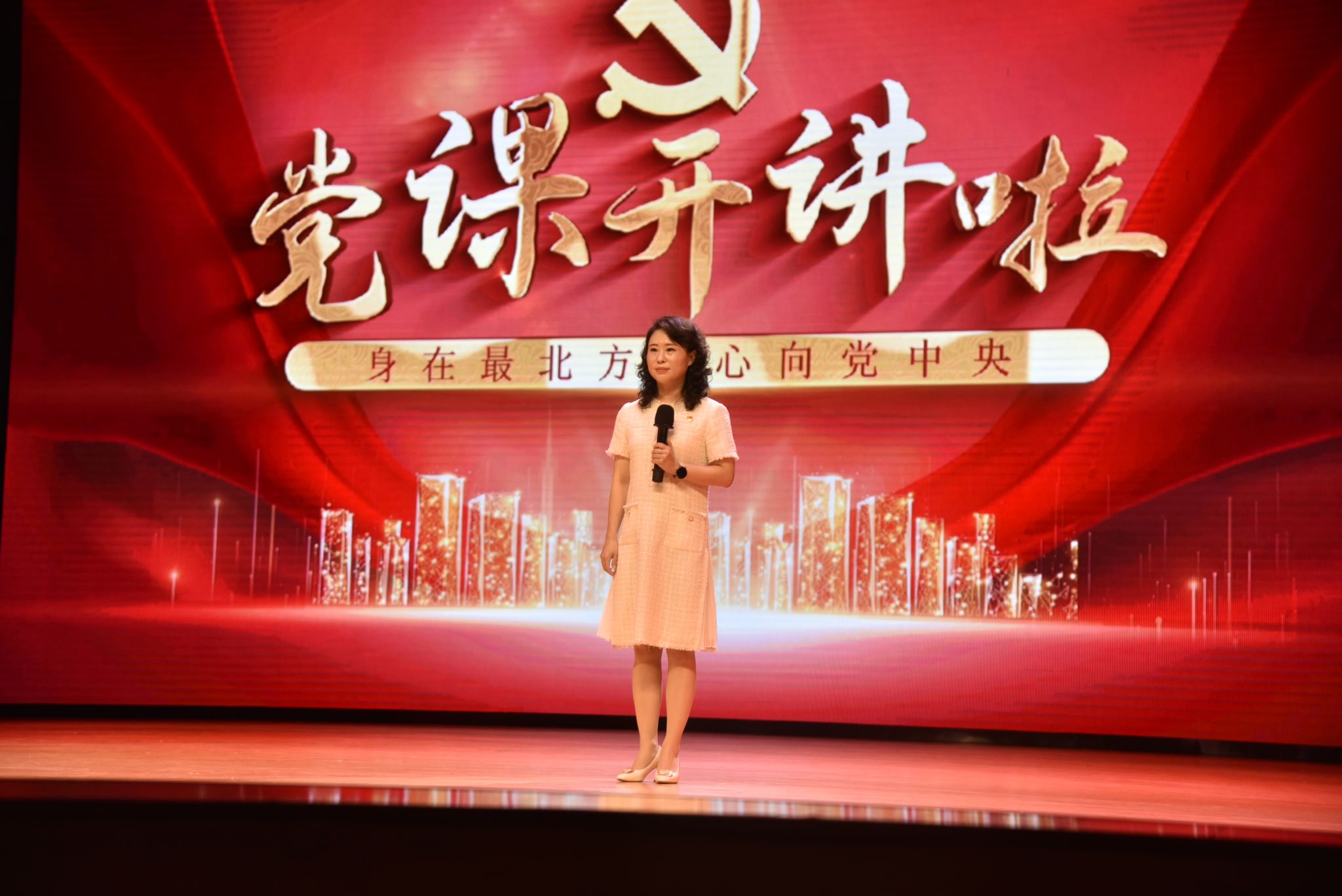 此次参赛的14部党课作品主题突出、形式鲜活经过层层选拔脱颖而出。用暖心的故事、感人的事迹展现各条战线党员干部蓬勃向上、昂扬奋发的精神状态,谱写一曲曲我心向党的赞歌,教育引导广大党员干部传承红色基因、激发奋进力量,以“身在最北方 心向党中央”的政治忠诚,踔厉奋发、勇毅前行,投身龙江大地高质量发展可持续振兴的火热实践中。来自省直机关工委、省委教育工委、省国资委、北大荒集团的400余名党员干部代表现场聆听党课。