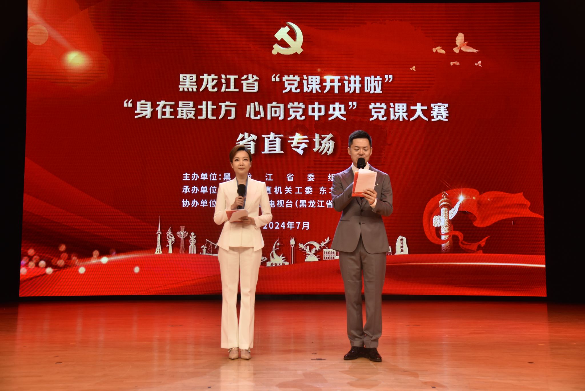 为深入学习贯彻习近平新时代中国特色社会主义思想和习近平总书记视察黑龙江省期间重要讲话重要指示精神,落实全省组织工作会议、全省组织部长会议精神,巩固拓展主题教育成果,庆祝中国共产党成立103周年、中华人民共和国成立75周年,黑龙江省委组织部持续深化“党课开讲啦”活动,在全省基层党组织中开展“身在最北方 心向党中央”党课大赛,7月26日,全省党课大赛第二场(省直专场)在东北农业大学音乐厅举办,学校党委副书记贺景平,党委常委、组织部部长于雷出席大赛现场。