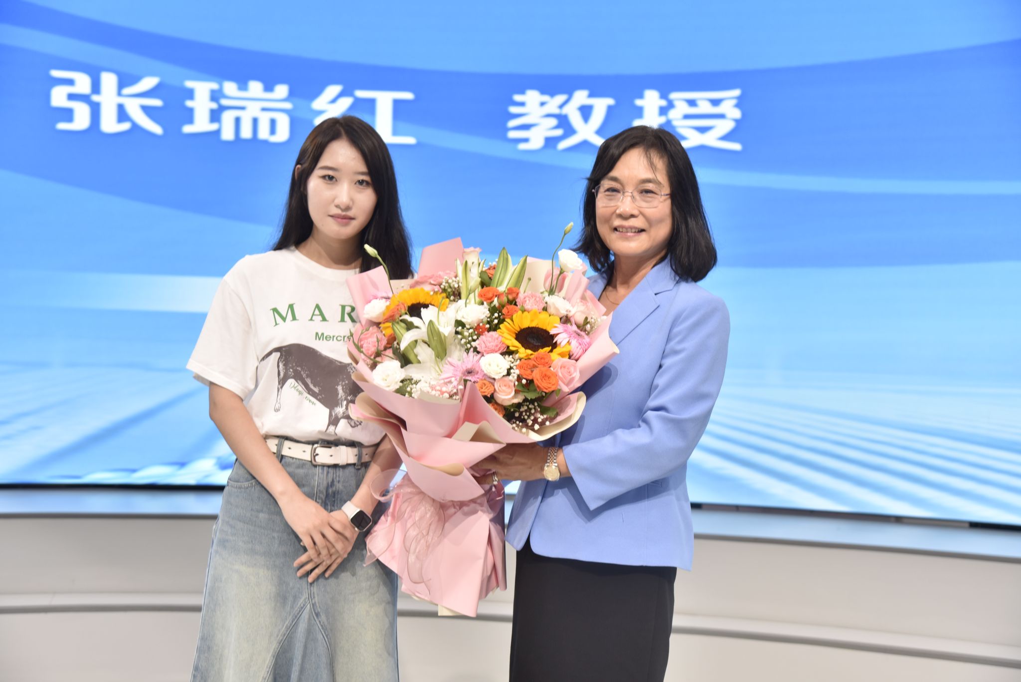 食品学院学生代表向张瑞红教授献花