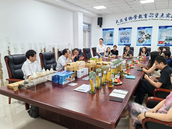 13日下午,代表团一行先后参观了农学院作物表型园区、大豆品质生物学遗传改良与加工利用团队的校内实验基地。辛大伟详细介绍了智慧农业专业作物表型园区承担教学任务及科研项目开展情况;王绍东介绍了团队在食品加工专用高附加值功能大豆新品种的研发及加工利用研究进展及取得的成果与未来研究方向等内容。随后,双方在公共基础实验楼520会议室开展交流座谈,对相互关心的学术问题进行了热烈的讨论与交流。