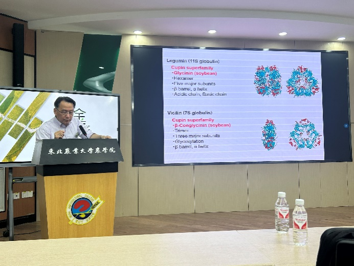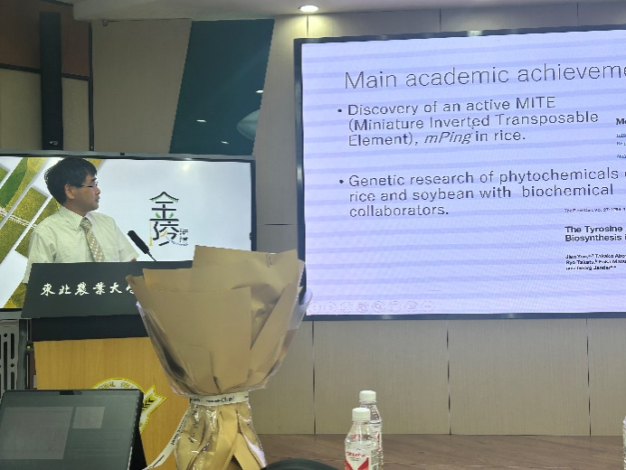 14日上午,应农学院金陵讲堂的邀请,丸山伸之、寺石政義分别以《诊断食物过敏的过敏原研究》和《自然条件下大豆根瘤菌偏好遗传因子之遗传分析》为题作学术报告。同日下午,丸山伸之一行到黑龙江省农科院与食品加工研究所、大豆研究所及生物研究所科研人员进行了学术交流。