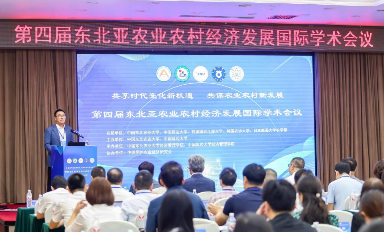 为促进农业科技的交流与传播,携手推动东北亚地区农业农村经济高质量发展,8月23至26日,由东北农业大学、延边大学,韩国国立江原大学、农协大学,日本新潟大学农学部共同发起,东北农业大学、延边大学主办,东北农业大学经济管理学院、延边大学经济管理学院承办,中国国外农业经济研究会协办的第四届东北亚农业农村经济发展国际学术会议在哈尔滨市召开。会议主题为“共享时代变化新机遇,共谋农业农村新发展”。会议聚焦东北亚地区农业农村区域合作新变化、新机遇和新潜力,为东北亚各国专家学者搭建高水平交流合作平台,来自中国、韩国、日本34所高校及科研院所的学者参加会议。东北农业大学校长付强、国立江原大学教授李钟寅、国外农业经济研究会秘书长胡冰川出席开幕式并致辞。开幕式由东北农业大学经济管理学院院长余志刚主持。