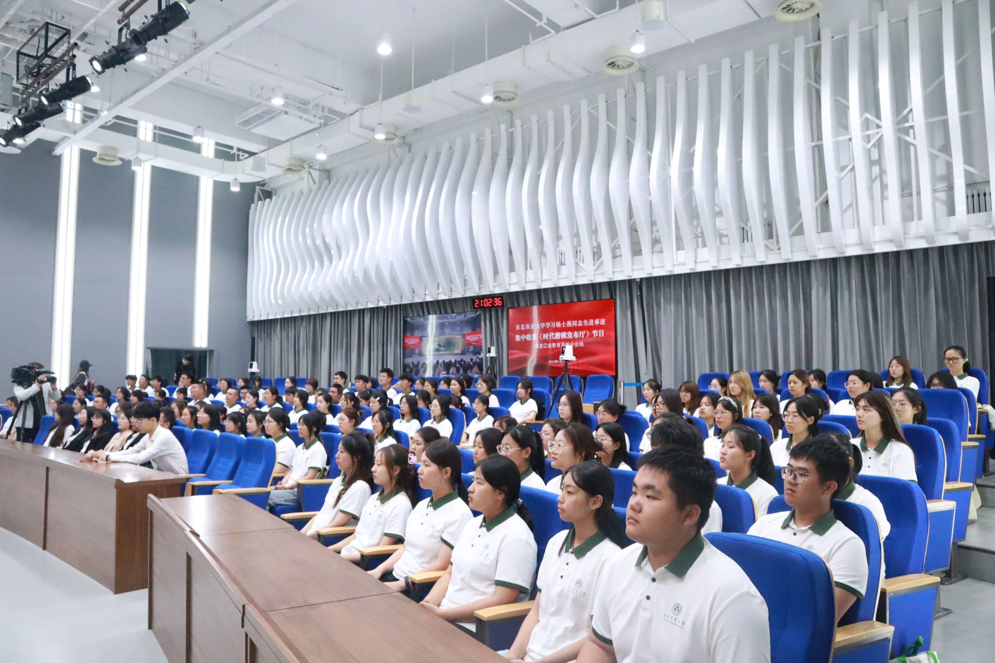 与会师生被杨士莪院士以身许国、为国“听海”的先进事迹深深触动,让人心怀敬仰,心生崇敬。教师们纷纷表示,作为一名新时代涉农高校的教育工作者,要时刻以科学家、教育家为榜样,不断提升自身的专业素养和教育理念,坚守立德树人初心,践行教书育人使命,扎实引领学生树牢科技报国信念,坚守强国有我誓言,在农业强国建设征程中书写为中国式现代化挺膺担当的青春篇章。同学们纷纷表示杨士莪饱含爱国情、强国志、报国行的人生经历,将永远激励着后辈学子奋勇前行,作为一名高等农业院校的学生,要树立科技报国志向,努力学好科学文化知识,厚植三农情怀,练就兴农本领,把小我融入大我,承前辈之志,担时代重托。