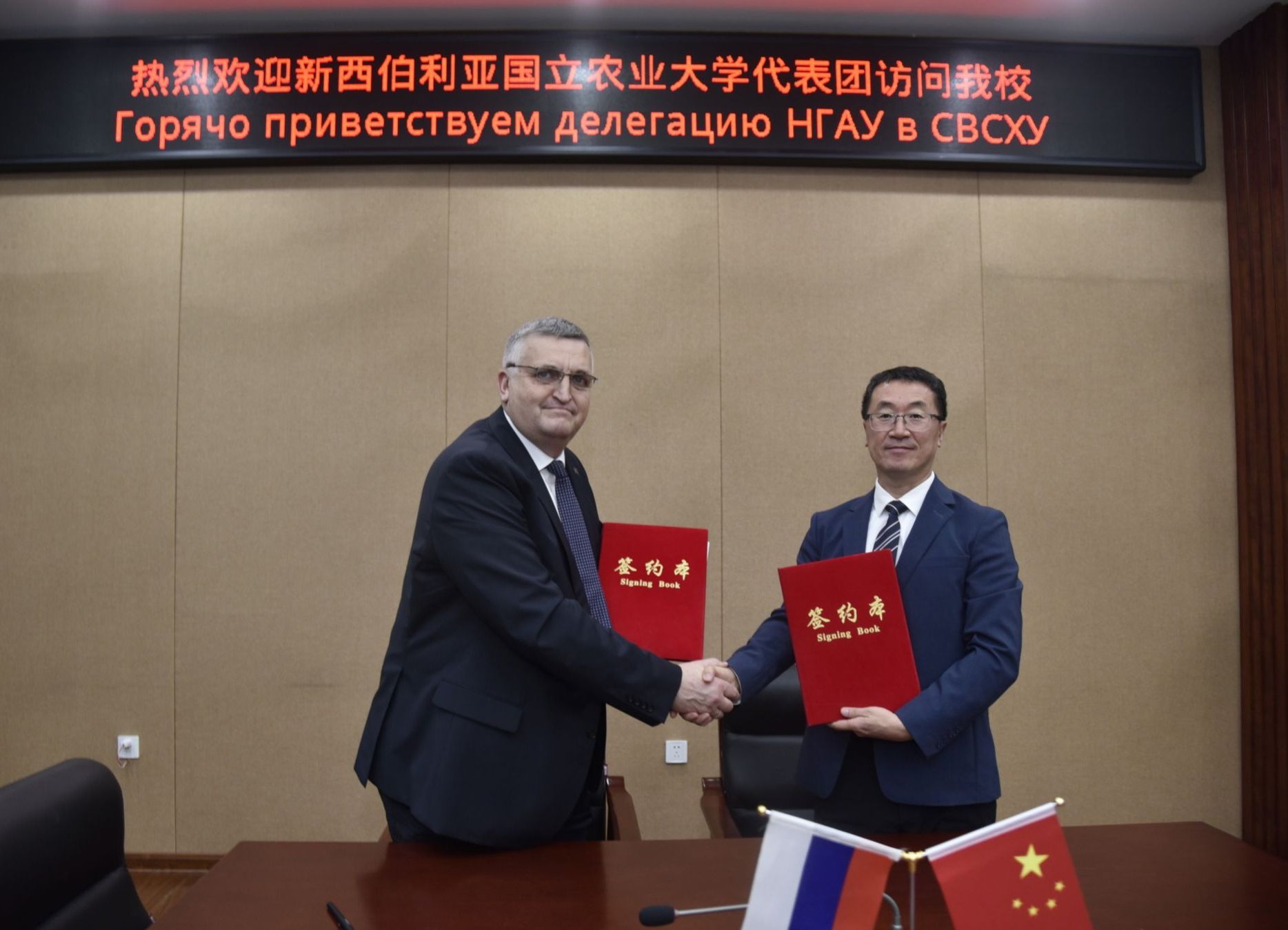 会上,刘忠华与巴宾签署了东北农业大学与新西伯利亚国立农业大学合作协议。