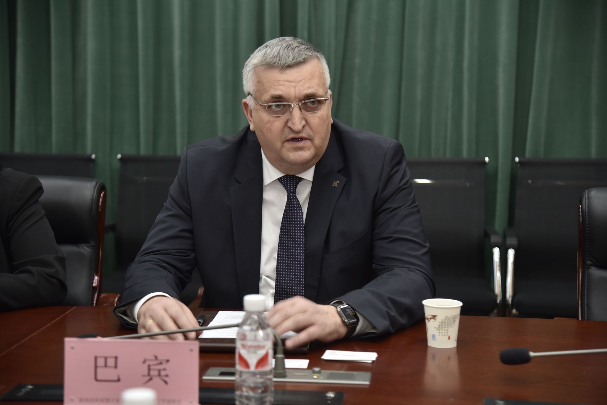 巴宾对学校的热情接待表示感谢。他表示,新西伯利亚国立农业大学始建于1935年,是俄罗斯西伯利亚和远东地区最好的农业大学。两所学校在办学特色和专业设置方面高度相似,有着良好的合作基础。他表示,希望在食品加工、畜牧兽医等优势专业加大师生互访互派力度,促进学术交流和资源共享,提高科研质量和水平。