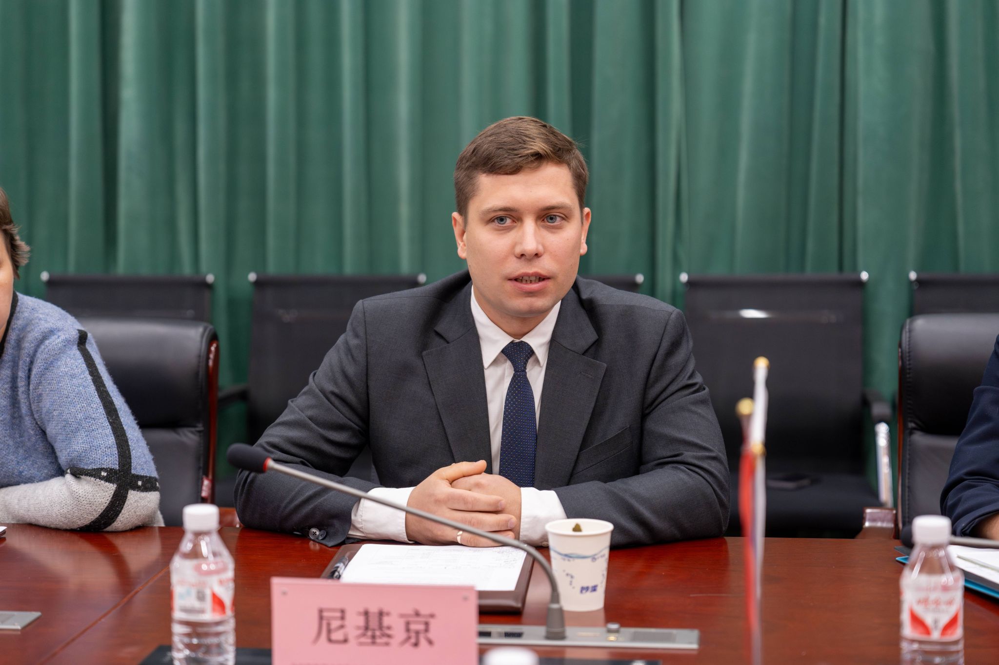 刘忠华对尼基金率团来访表示热烈欢迎,祝贺圣彼得堡国立兽医大学代表队在中国研究生乡村振兴科技强农+创新大赛第四届科技作品邀请赛(国际赛道)中获得第一名。他表示,贵校在比赛中取得佳绩,这不仅展现了选手的风采,也体现了贵校卓越的教学和科研实力。东北农业大学愿与圣彼得堡国立兽医大学这类高水平的俄罗斯农业院校建立合作关系。希望双方围绕着畜牧和兽医等优势学科开展科研合作,共同申报国家级国际科研项目,实施学生互派和合作办学等人才培养项目。