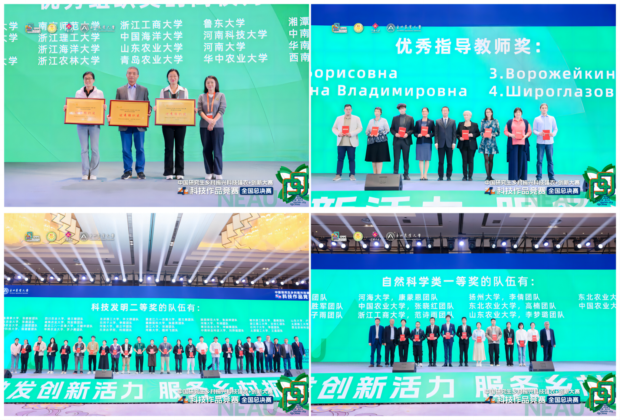 本次大赛自5月份开赛以来历经4个月,经组织报名、作品征集、报名资格审核、全国初赛评审,共有196项作品入围全国总决赛,其中直接评定全国三等奖97项;总决赛现场答辩期间评选全国二等奖68项(科技发明制作类31件、自然科学类24件、社会科学13件);全国一等奖31项(科技发明类14件、自然科学类11件、社会科学6件);授出优秀指导教师奖31项,共53人获奖;优秀组织单位43个。其中,华中农业大学刘胜军团队的《优质、高抗柑橘快速育种平台的搭建与应用》作品、中国农业大学周珈任团队的《SeedPhenotyper——高通量作物种子表型分析仪》作品、鲁东大学油伦贺团队的《新型北虫草无抗饲料添加剂的开发及利用》作品,分别获得全国冠、亚、季军。在国际赛道方面,圣彼得堡国立兽医大学代表队的作品获得一等奖,新西伯利亚国立农业大学代表队、克拉斯诺亚尔斯克国立农业大学代表队、俄罗斯兽医和农业系统计数开发和转让科学咨询中心代表队的作品获得二等奖,同时诺维科娃·奥克萨娜·鲍里索夫娜、沃罗热基娜·娜塔莉亚·赫伯托夫娜、恰普里吉娜·伊丽娜·亚历山大罗夫娜、谢佩特金娜·斯维特兰娜·弗拉基米洛夫娜等四位老师获得优秀指导教师奖。学校共向大赛推荐作品9项,有5项入围全国总决赛,其中获得三等奖1项、一等奖4项,获奖数量和等级在全国参赛院校中名列前茅。