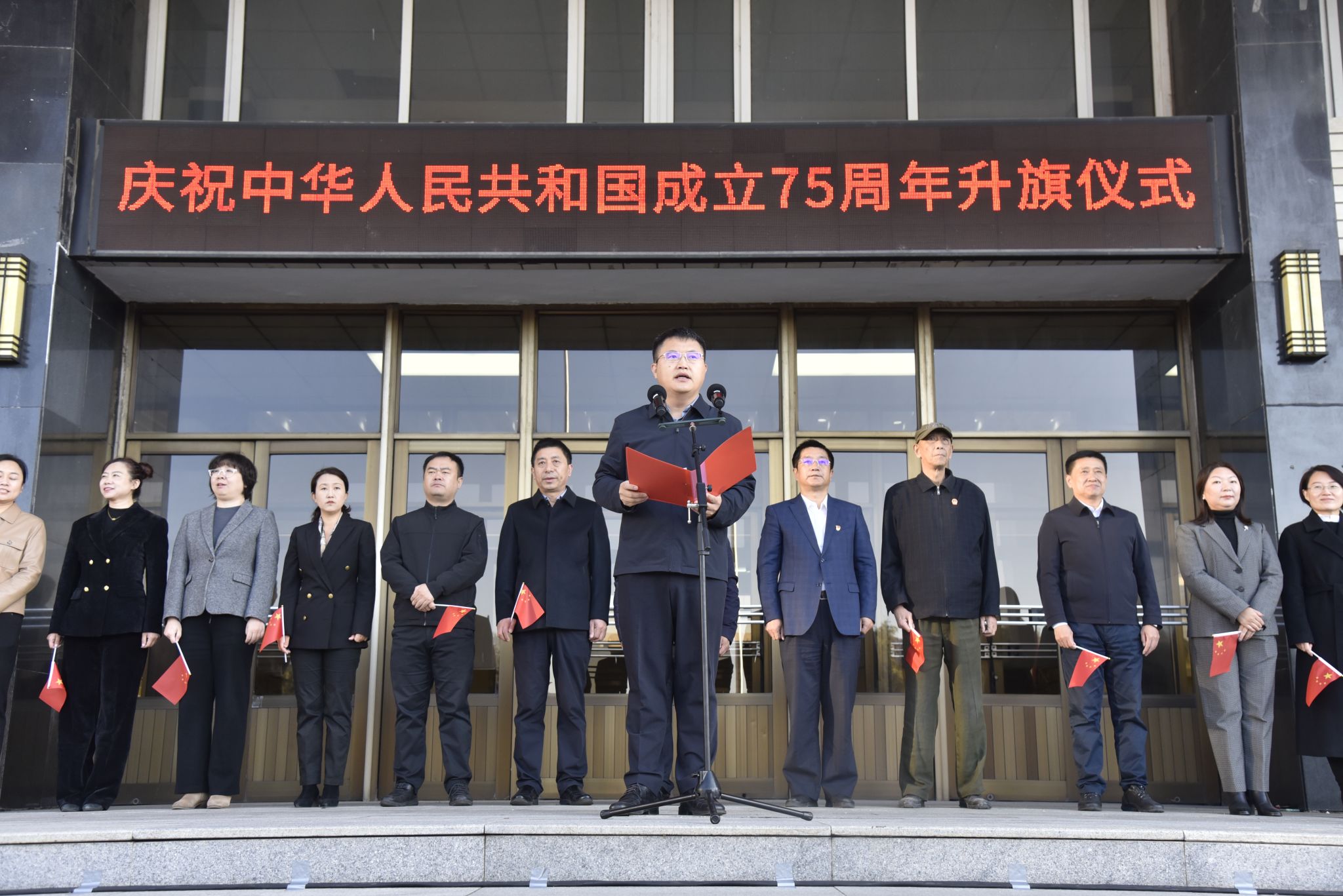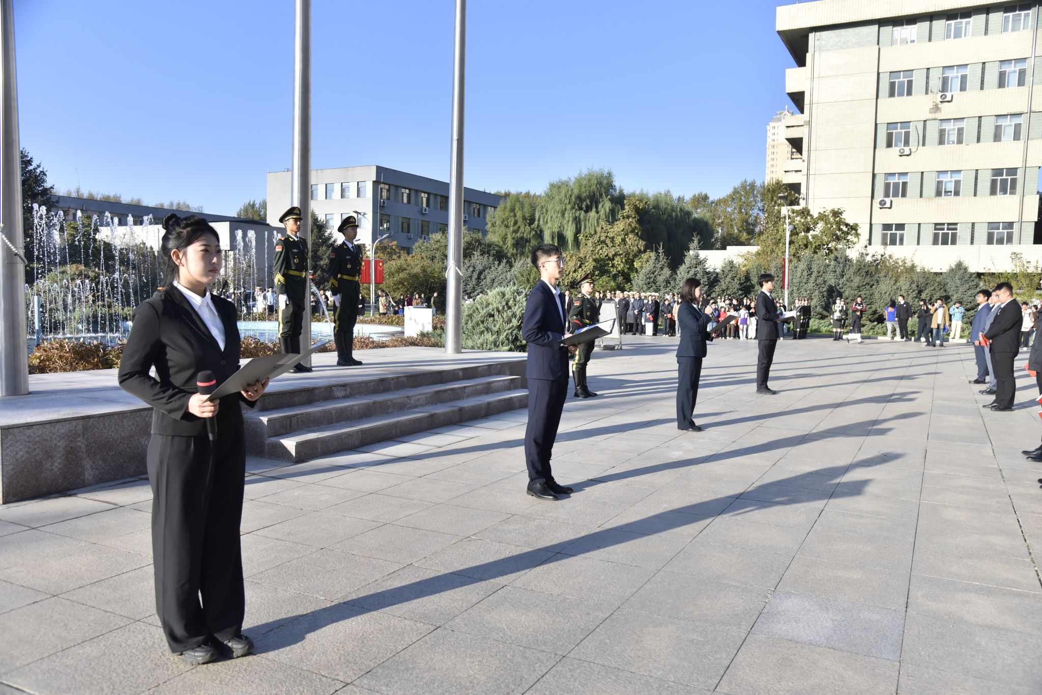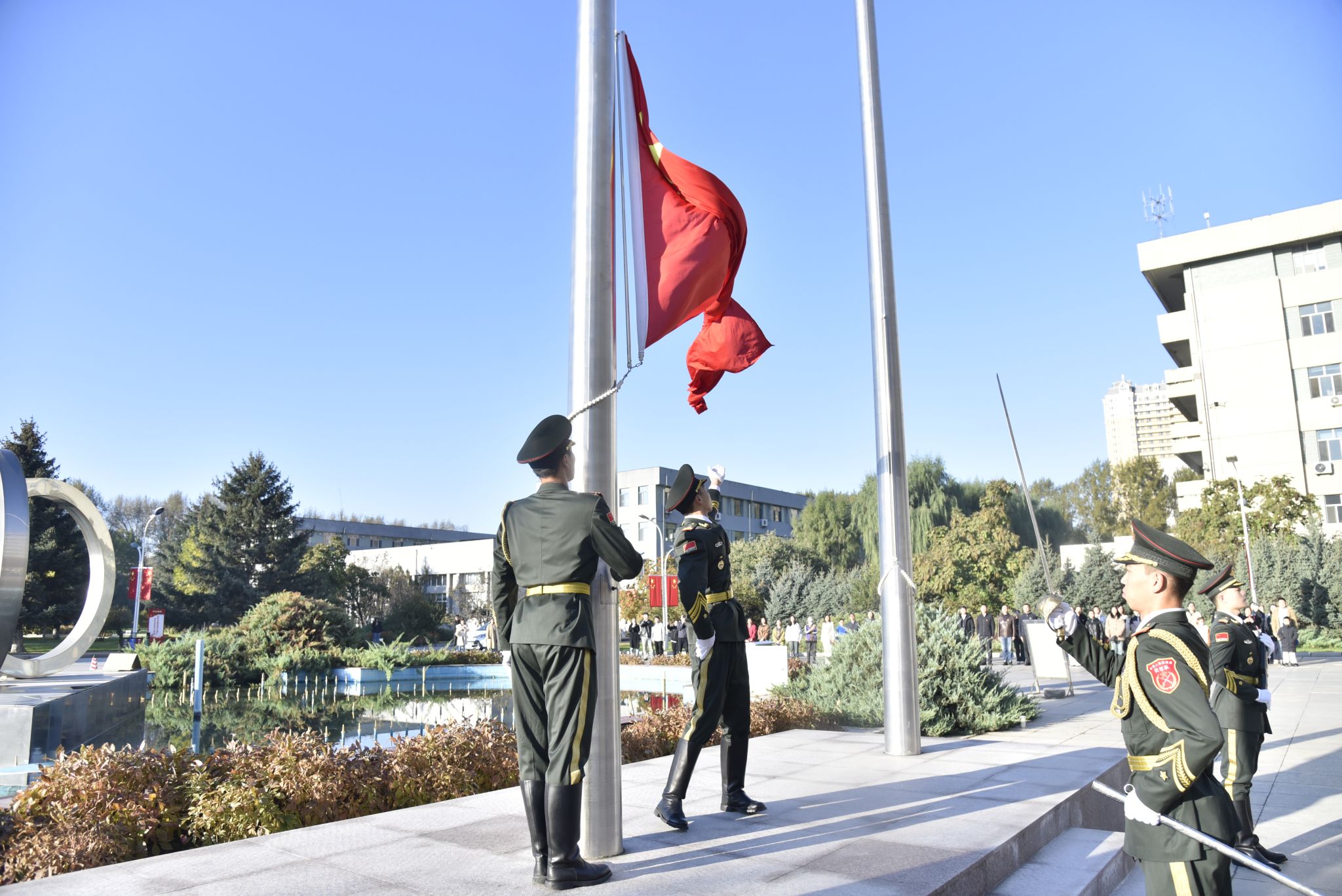 10月1日6时40分,骄阳初升、清风拂面。东北农业大学在主楼广场隆重举行庆祝中华人民共和国成立75周年升国旗仪式。校党委副书记贺景平、学生工作部(武装部)部长于兴业、副部长宫建伟、刘双奇,各学院党委副书记、辅导员、学生代表,以及校大学生国旗护卫队历届队员和校友近2000人参加活动。升旗仪式由学生工作部(武装部)部长于兴业主持。