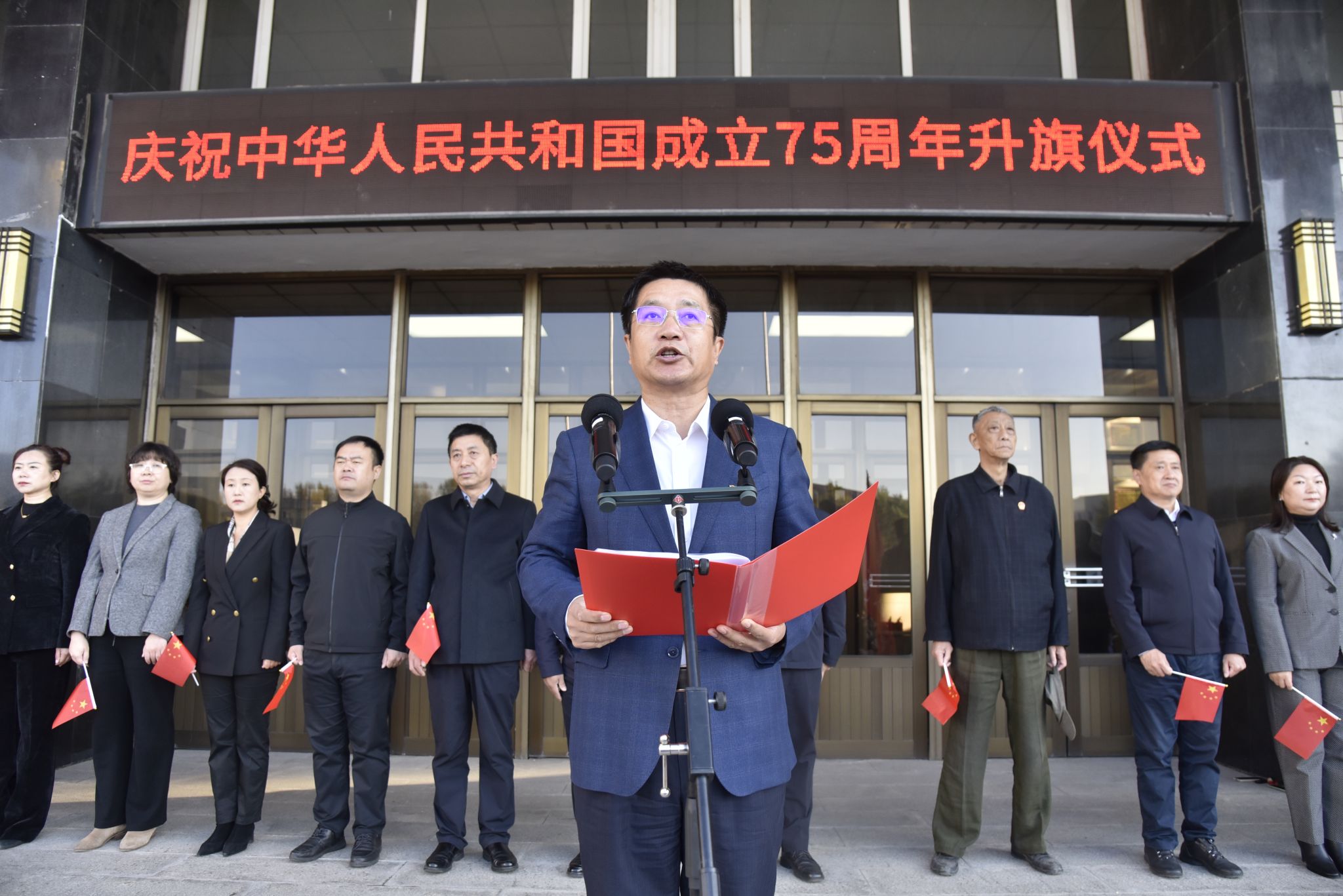 贺景平在讲话中,回顾了新中国75年的光辉历程,并对师生提出四点希望,一是要志存高远,胸怀天下。树立为中华民族伟大复兴而不懈奋斗的宏大志向。把个人的命运与国家的命运紧密相连,以天下为己任,以奉献为荣耀。二是要修身立德,砥砺品格。要树立正确的世界观、人生观、价值观,着力培养高尚的道德情操和良好的行为习惯,明大德、守公德、严私德,做到品德润身、公德善心、大德铸魂。三是要勇于创新,敢于实践。要培养自己的创新思维和创新能力,敢于质疑权威,敢于突破传统,敢于提出新的观点和方法。四是要热爱生活,保持健康。要热爱生活,保持健康的身体和良好的心理状态,积极应对各种压力和挑战。