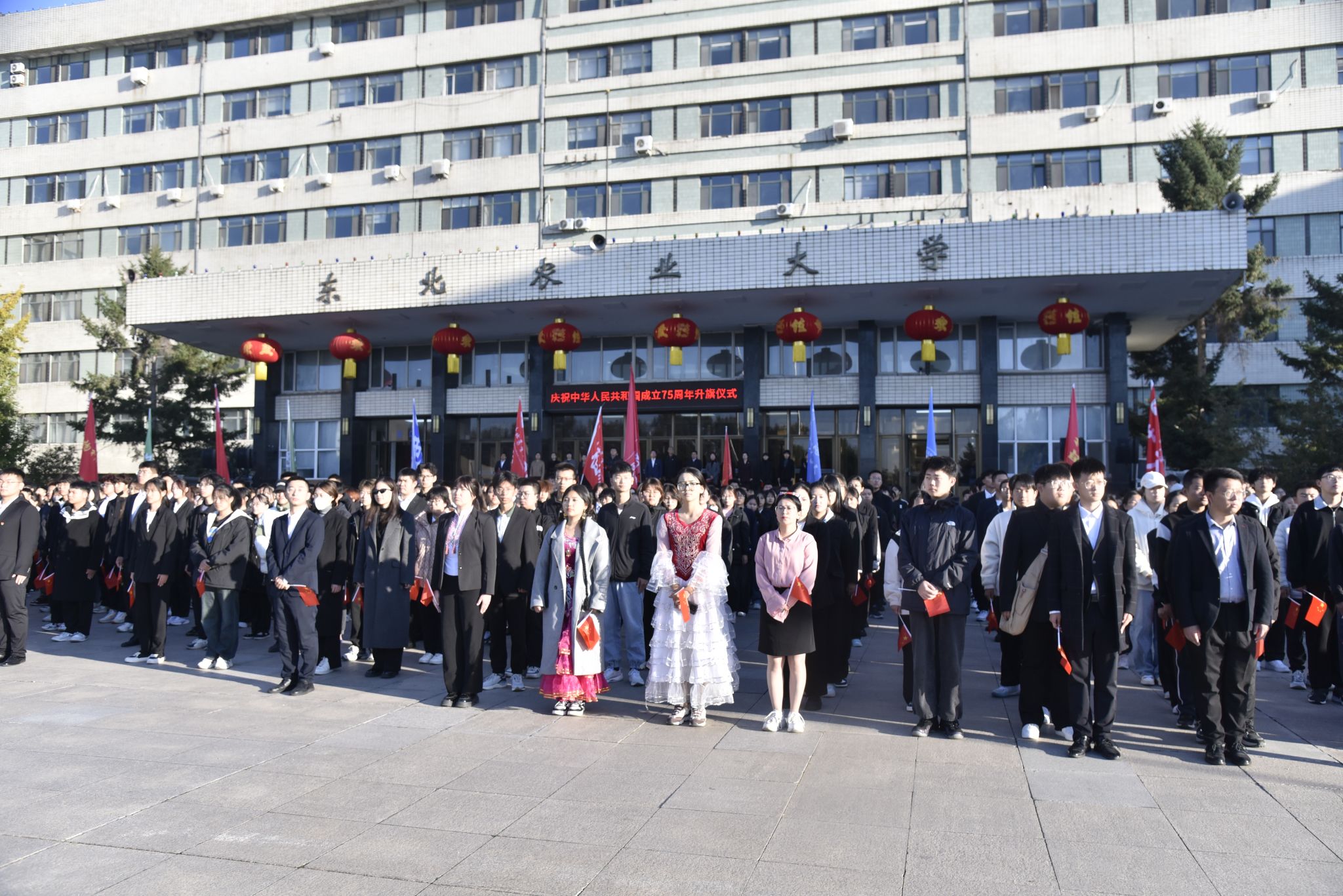 最后,现场全体师生齐唱《歌唱祖国》,歌声气势如虹,响彻云霄,展现了东农人踔厉奋发,矢志不渝,共同书写“强国建设,东农何为”精彩答卷的磅礴力量!