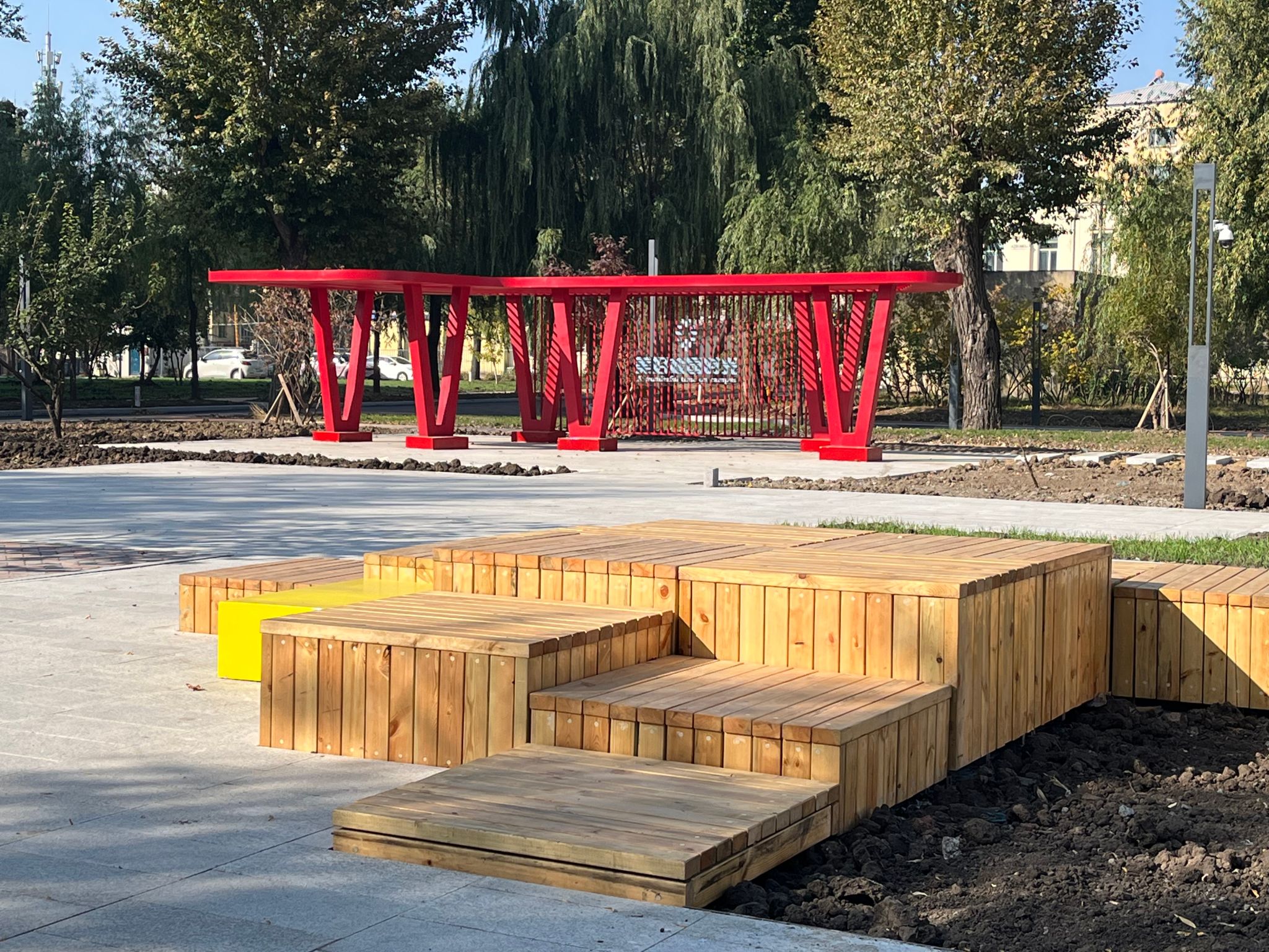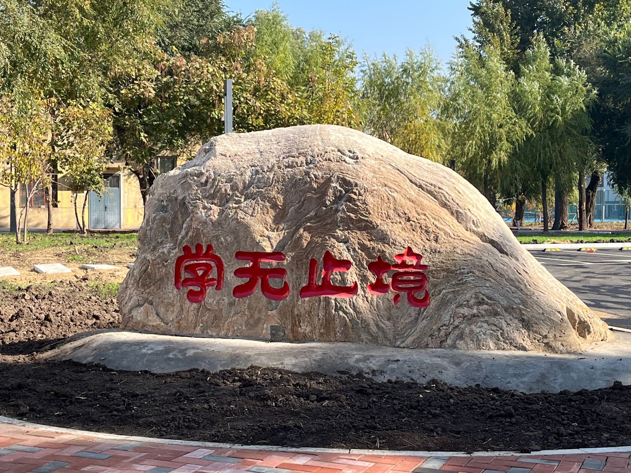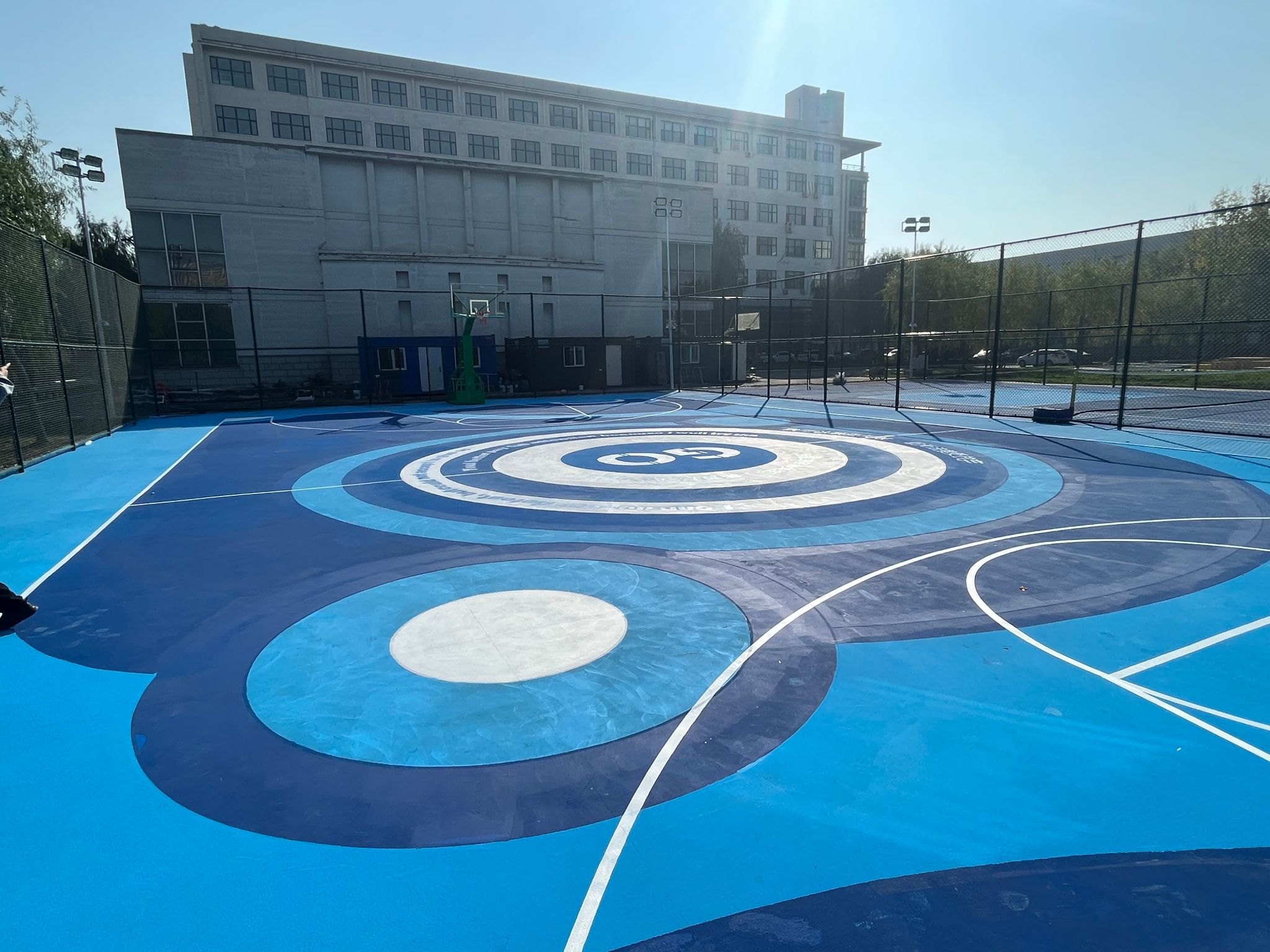 此次改造对西区校园内多条道路进行了重新铺设和优化,通过合理规划使行人步道与车行道实现了科学分离,进一步提升安全性;在绿化景观方面,预留充足的绿化空间,并进行精美设计。预留区域将种植各类植物,营造出优美的自然景观,提升校园的生态环境;在基础设施方面,更换了入口处大门,设置新围栏,并对老旧围墙进行了粉刷。在广场区域内新增休憩座椅与景观亭。对原有的老旧篮球场进行升级改造,采用专业的篮球场地面材料铺设,并安装新的篮球架和围网,提升了运动时尚感。