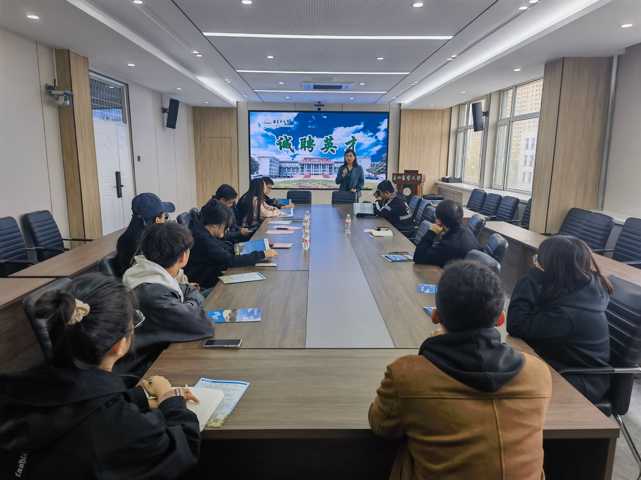 座谈会后,于军一行前往东北农业大学向阳实验实习基地调研参观。调研期间,向红英向我校部分博士、硕士毕业生,就塔里木大学教师招聘事宜进行了宣讲。