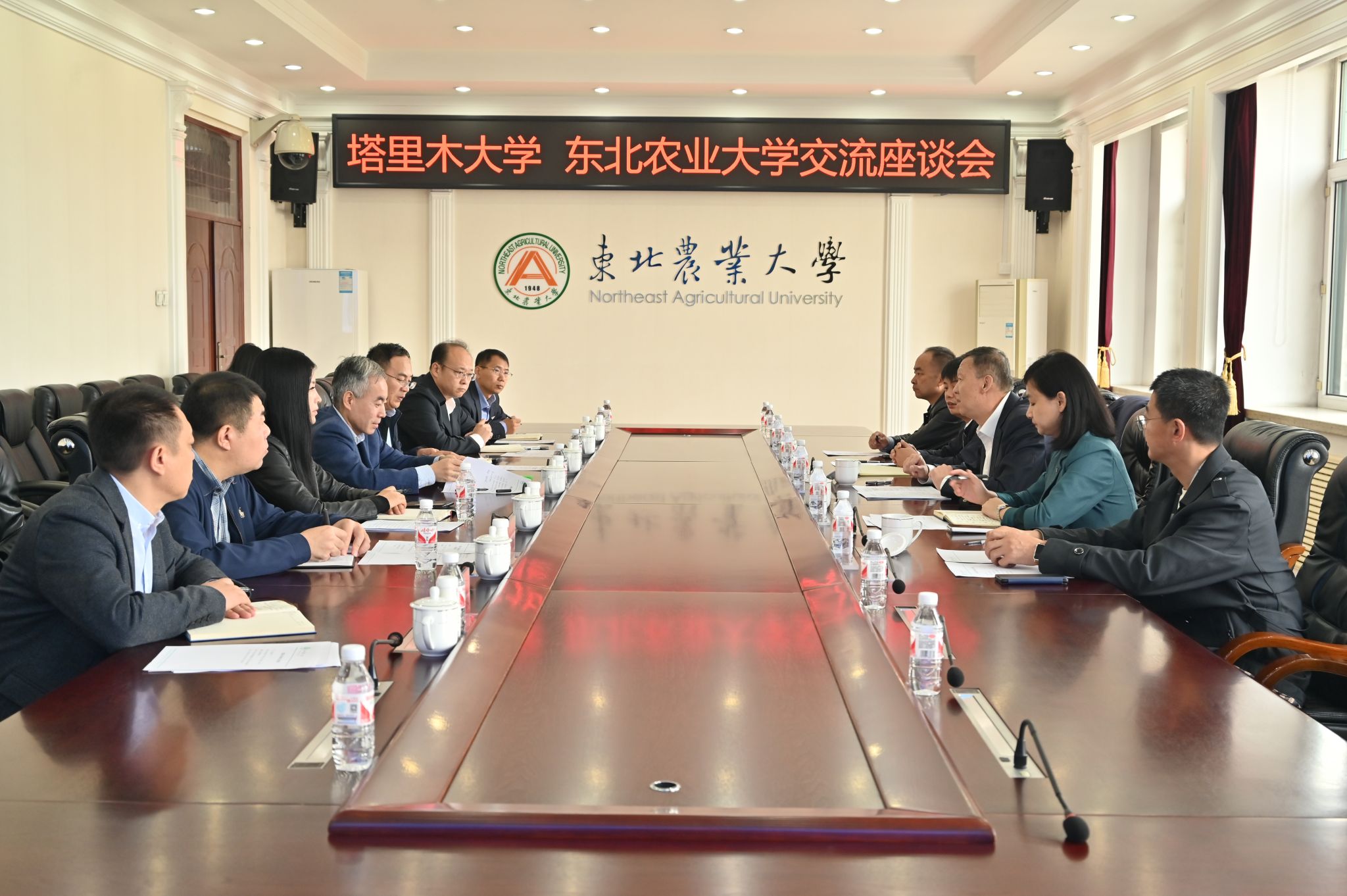 10月14日,塔里木大学党委副书记于军,党委组织部(党校办公室)副部长(副主任)向红英、基建处副处长李献灿、园艺与林学学院副院长吴庆明、党委办公室(校长办公室)行政科科长刘文仙一行5人到东北农业大学调研交流,东北农业大学副校长孙占峰参加调研并主持座谈会。