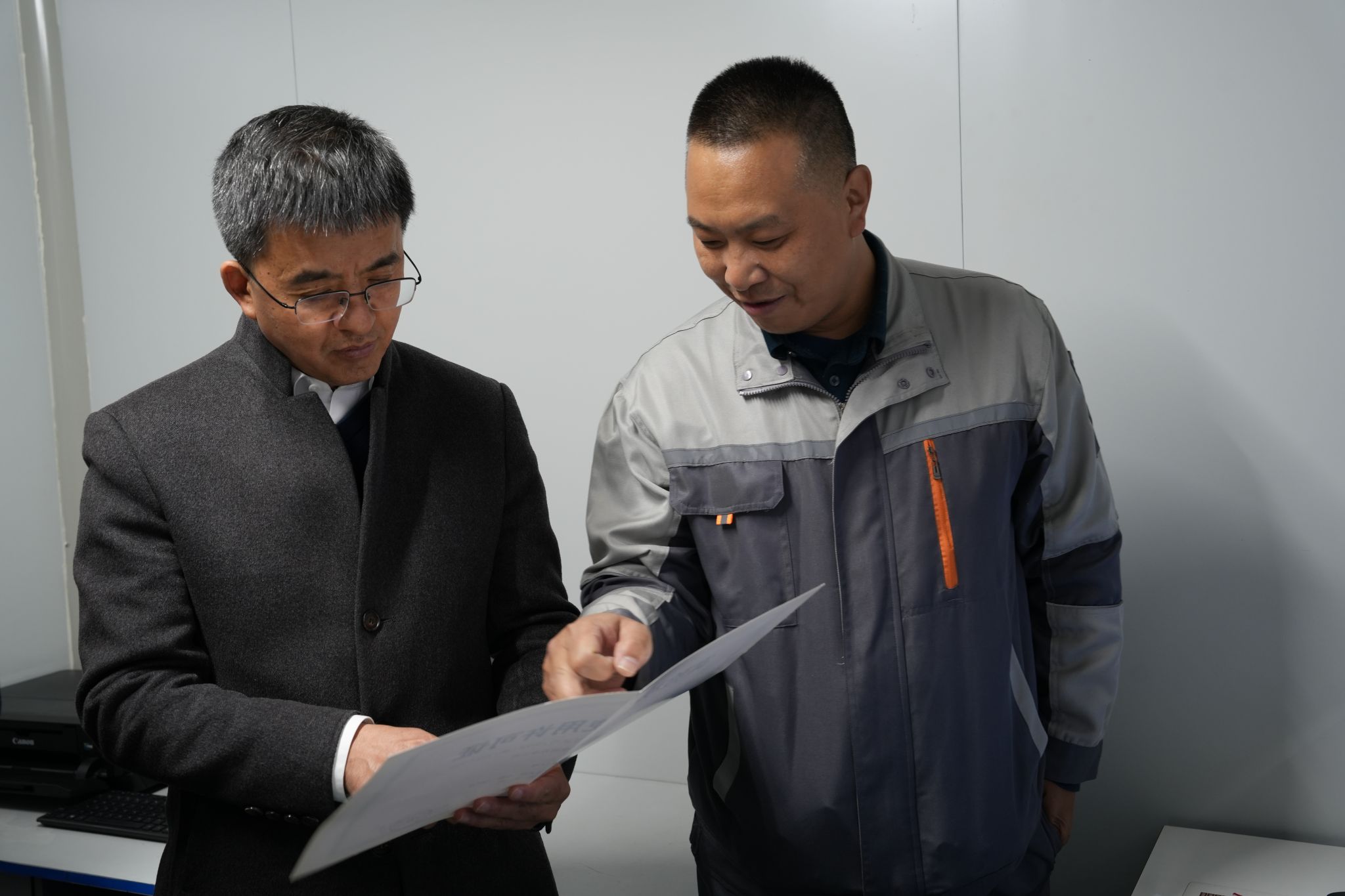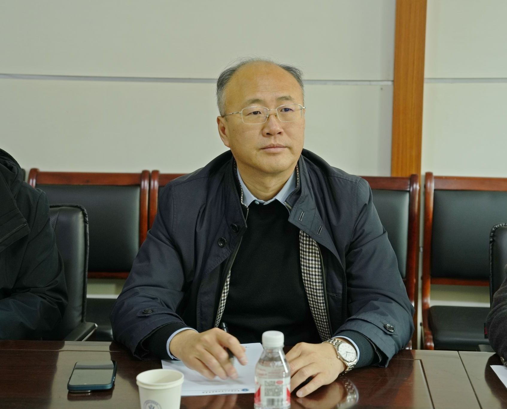 付强与工作人员交流