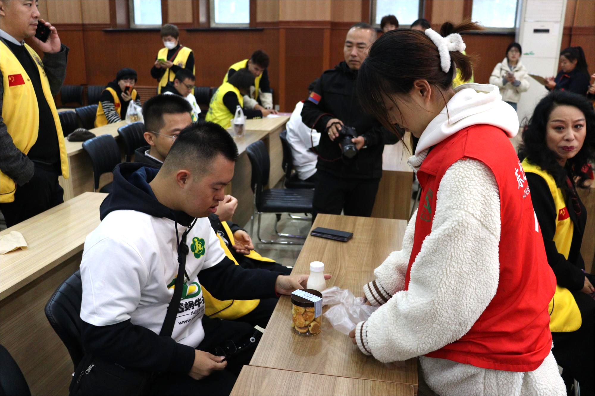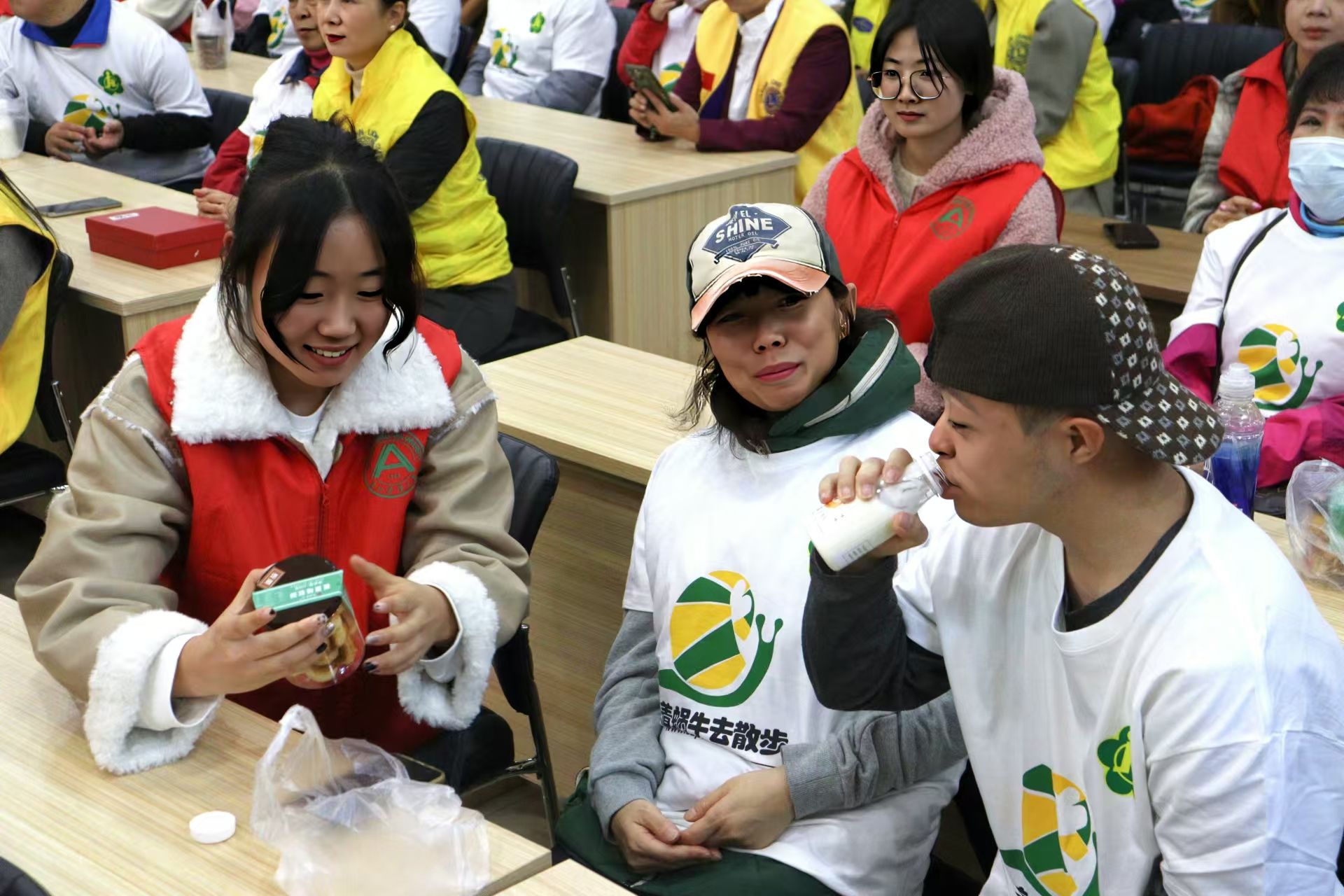 学校为每位“蜗牛”宝宝精心准备了由食品学院现场制作的酸奶和糕点。