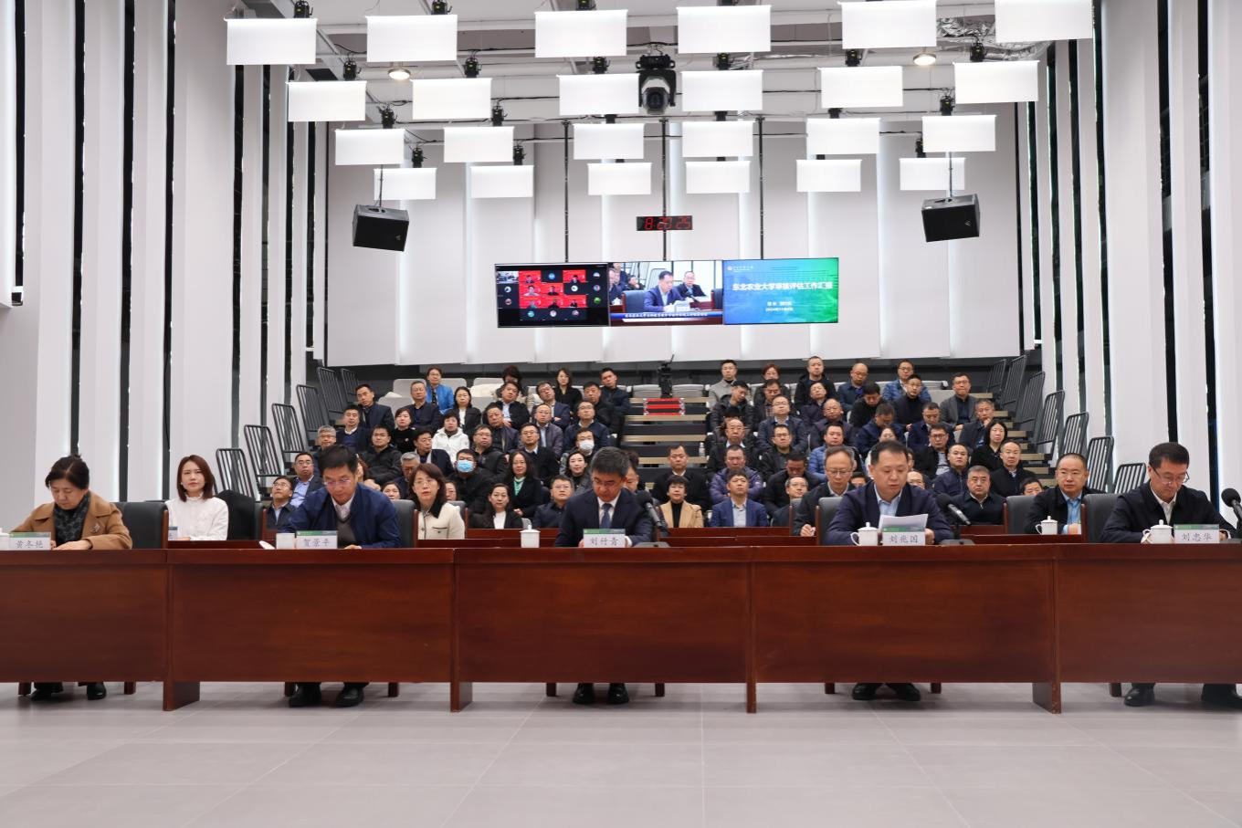 11月3日上午,东北农业大学本科教育教学审核评估启动会在成艺楼201智慧教室召开。会议采取线上线下相结合的形式进行。审核评估专家组组长、西北农林科技大学校长吴普特教授,专家组副组长、佳木斯大学党委书记武瑞教授及专家组全体成员线上参加会议,黑龙江省教育厅总督学刘兆国、教育督导室主任黄冬艳、一级主任科员马云艳,东北农业大学校长刘竹青等全体在校校领导,各职能部处主要负责人,各学院党委书记、院长参加会议。会议由副校长刘忠华主持。