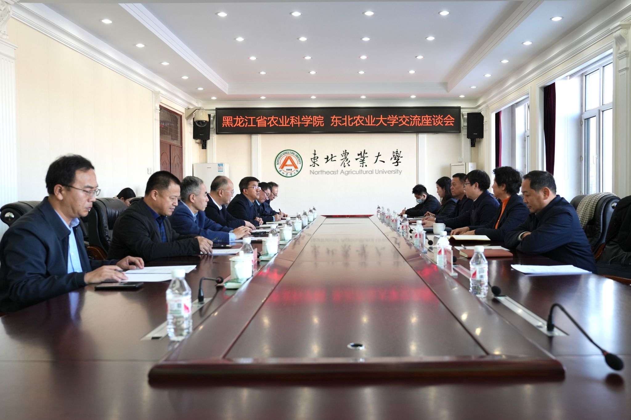 12月3日,黑龙江省农业科学院党组书记、院长申甲带领副院长卢淑雯、焦少杰、朱龙付以及相关人员到东北农业大学开展交流座谈。东北农业大学党委书记付强,校长刘竹青,副校长孙占峰、刘忠华、陈庆山、姜毓君,学校办公室主任王豫龙参加座谈会。座谈会由刘竹青主持。