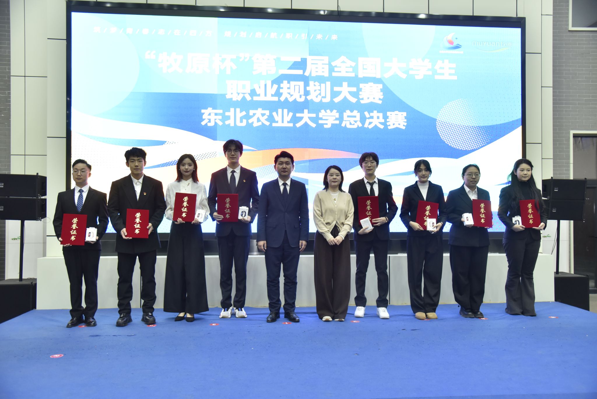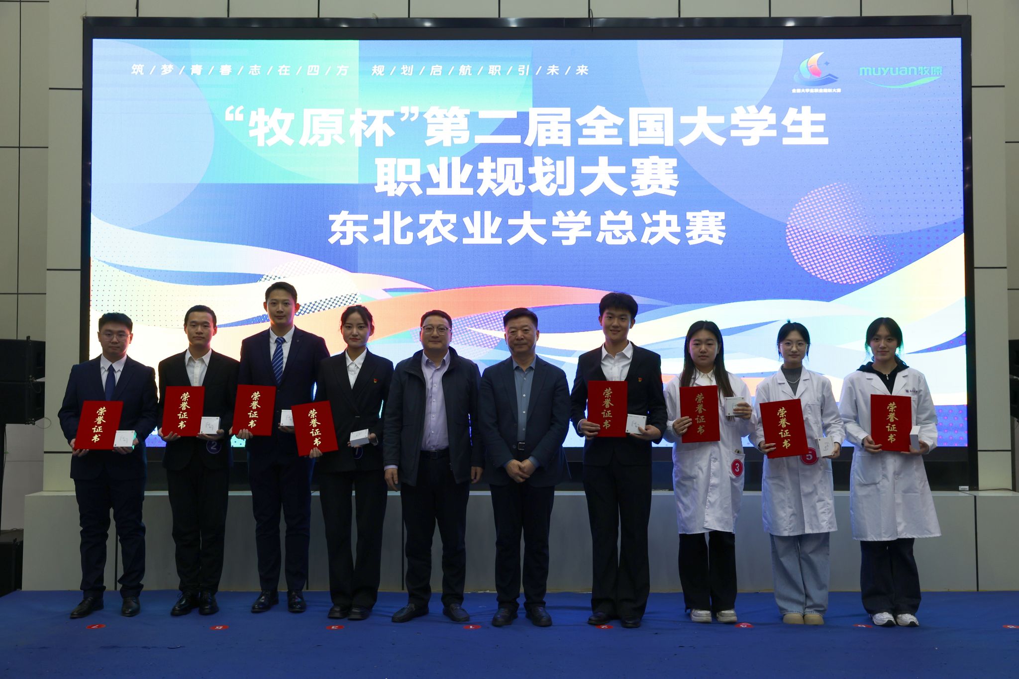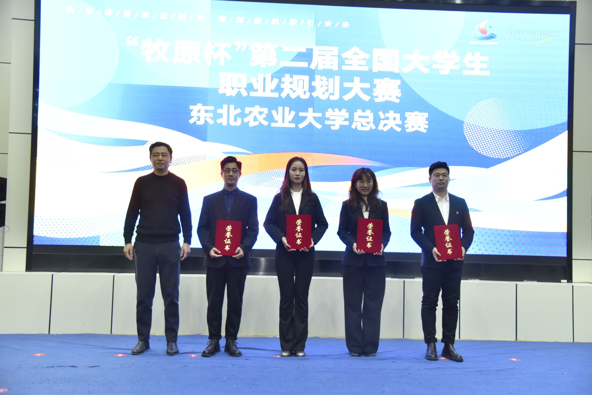 12月3日晚,由招生就业处主办的第二届全国大学生职业规划大赛东北农业大学总决赛在梦想小镇举行,教育部全国高校就业创业指导教师培训特聘专家郭勇、上海氪创教育科技有限公司董事长段修龙、哈尔滨工程大学生涯规划与就业指导教研室负责人陈燃、牧原集团人力资源部经理张桢、招生就业处生涯发展与就业指导教研室主任李云丹出席大赛并担任评委,黑龙江省大学生就业创业指导中心就业创业服务部副部长王妍、招生就业处处长宋跃芬、副处长吴立龙、李巍,招生就业处全体工作人员、部分辅导员老师及学生代表共计200余人现场观摩比赛。