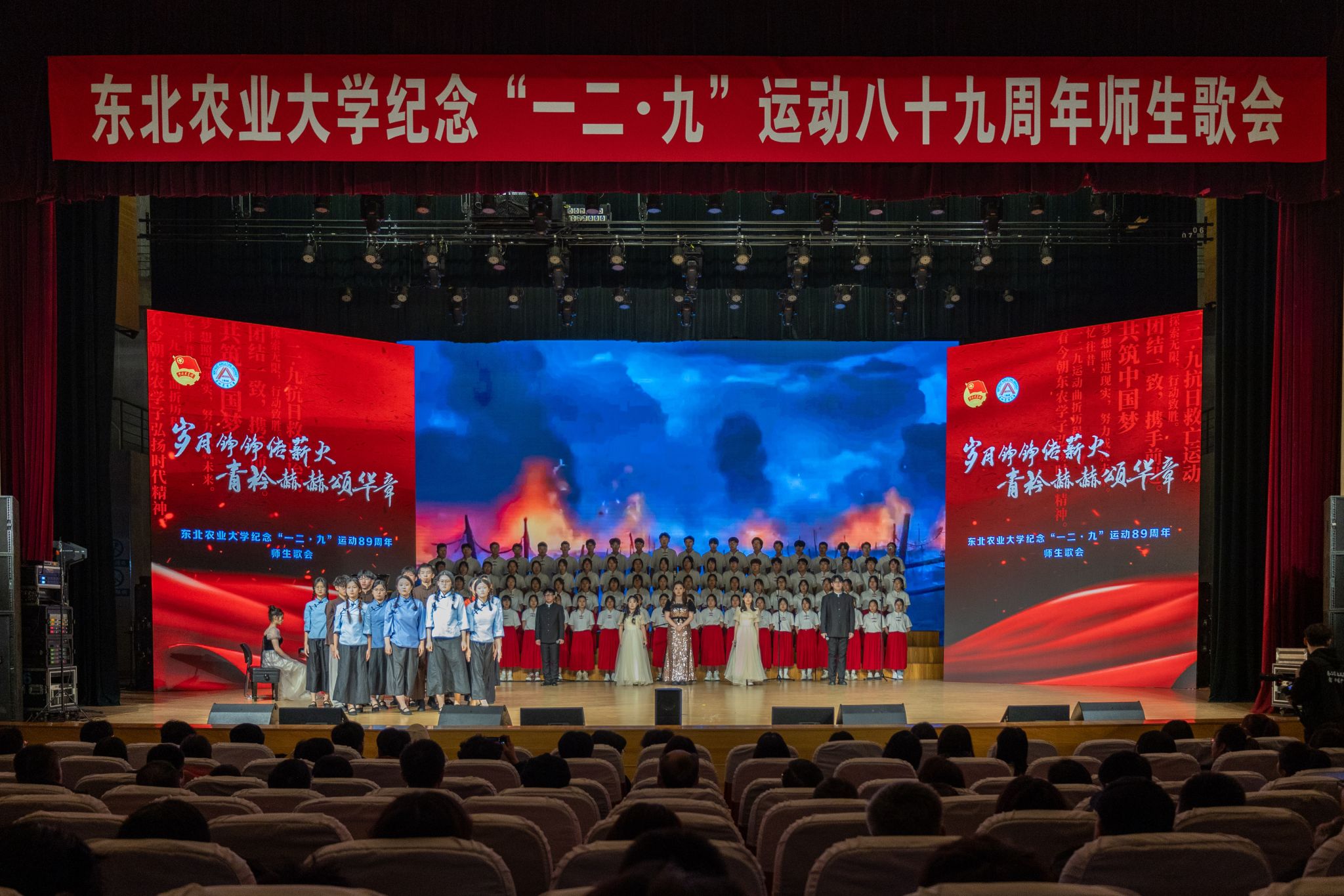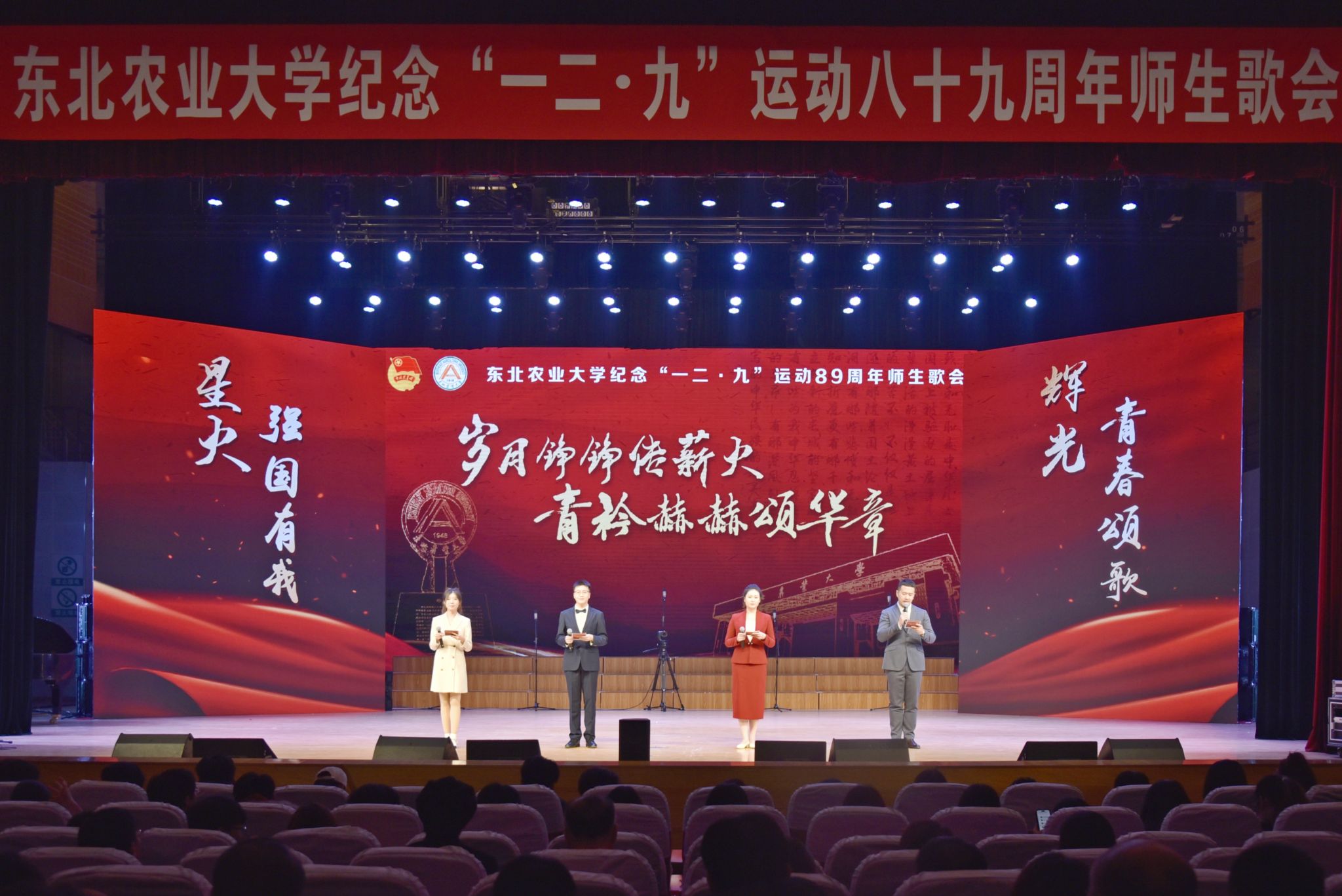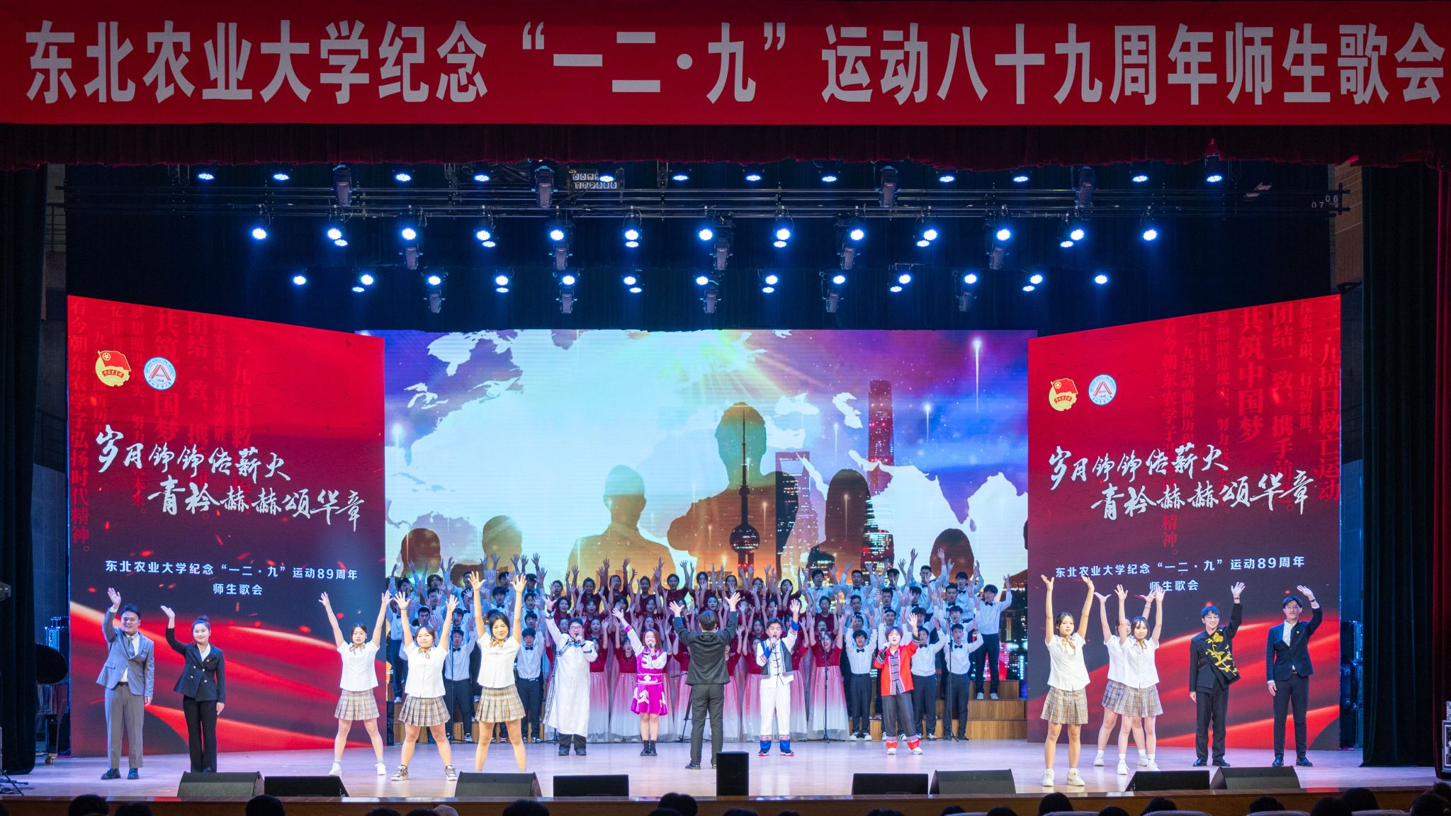 12月9日,我校在音乐厅隆重举办纪念“一二·九”运动89周年师生歌会。校党委书记付强,党委副书记贺景平,校纪委书记、省监委驻东北农业大学监察专员王艳春,统战部部长、省绿色食品科学研究院党委书记、院长高放,组织部部长吴立全,宣传部部长王博,学生工作部(学生处、武装部)部(处)长于兴业,招生就业处副处长吴立龙以及重庆市2024年区县党委教育工作领导小组办事机构负责人能力提升培训班学员出席本次活动。各学院党委书记、院长、党委副书记、团委书记、辅导员代表和学生代表等共计千余人到场观看,线上同步直播,观看人次达7.5万。