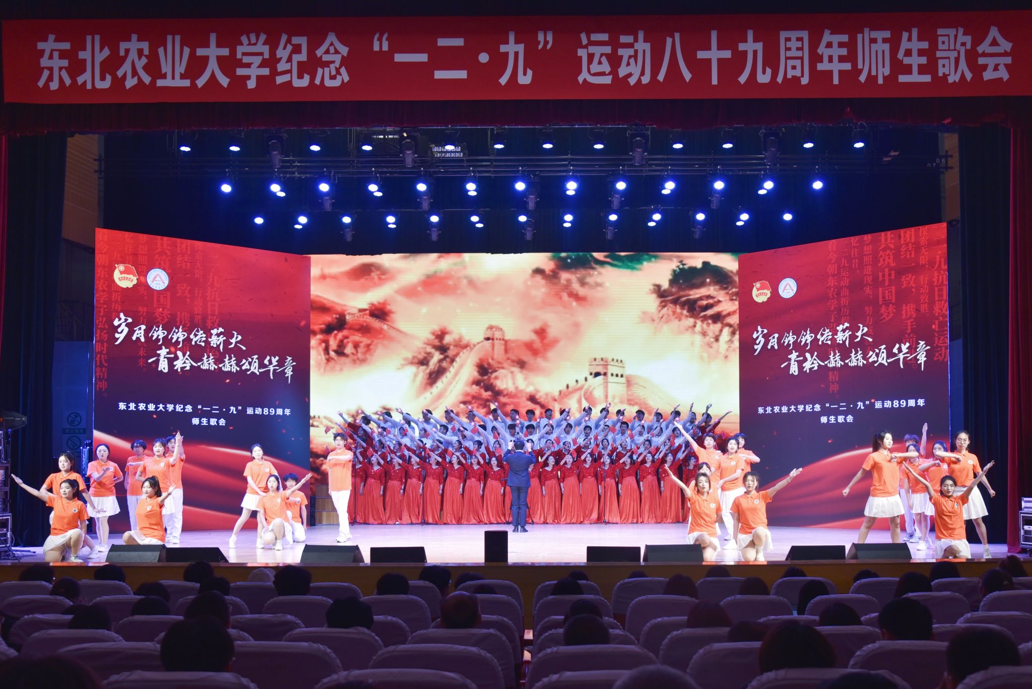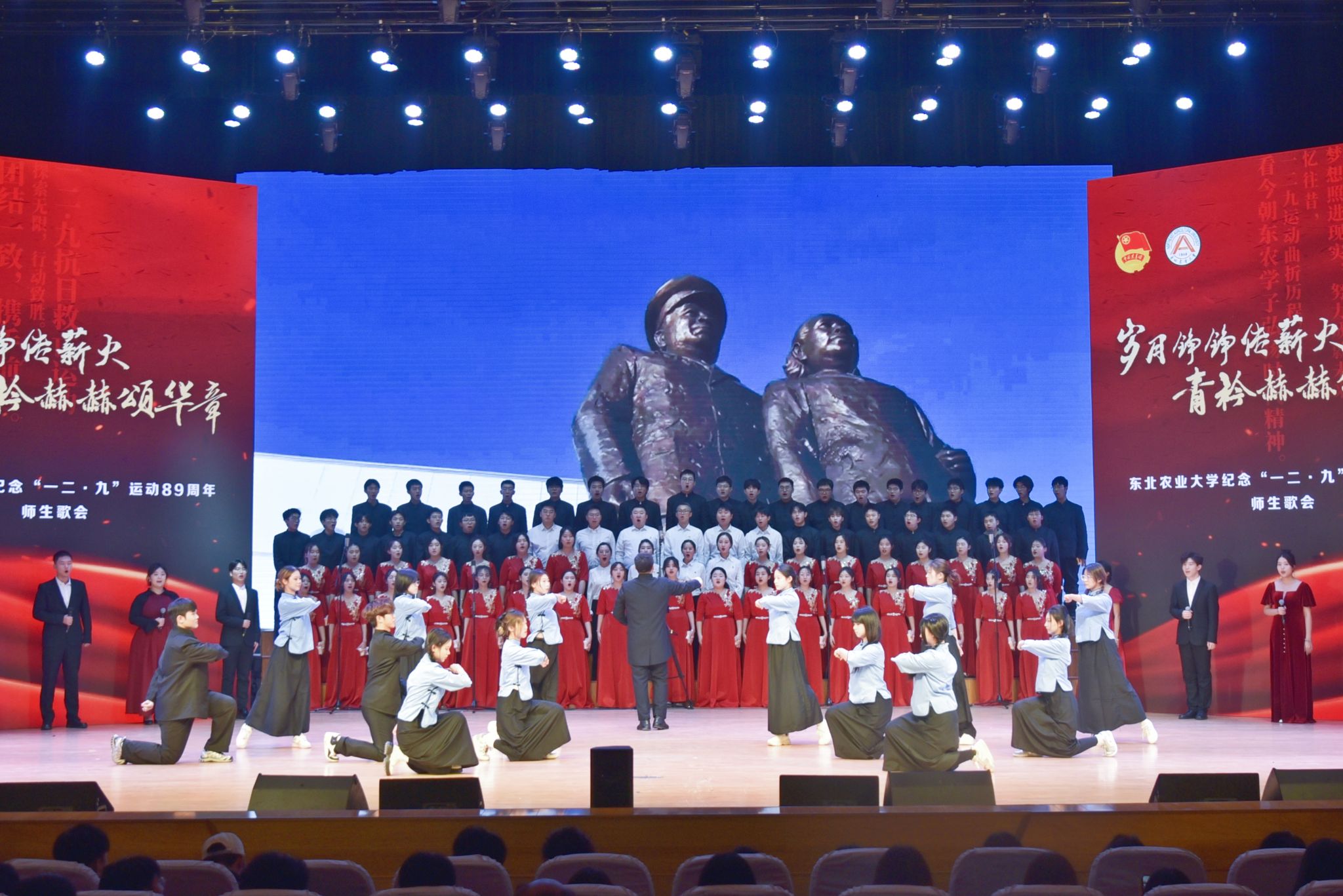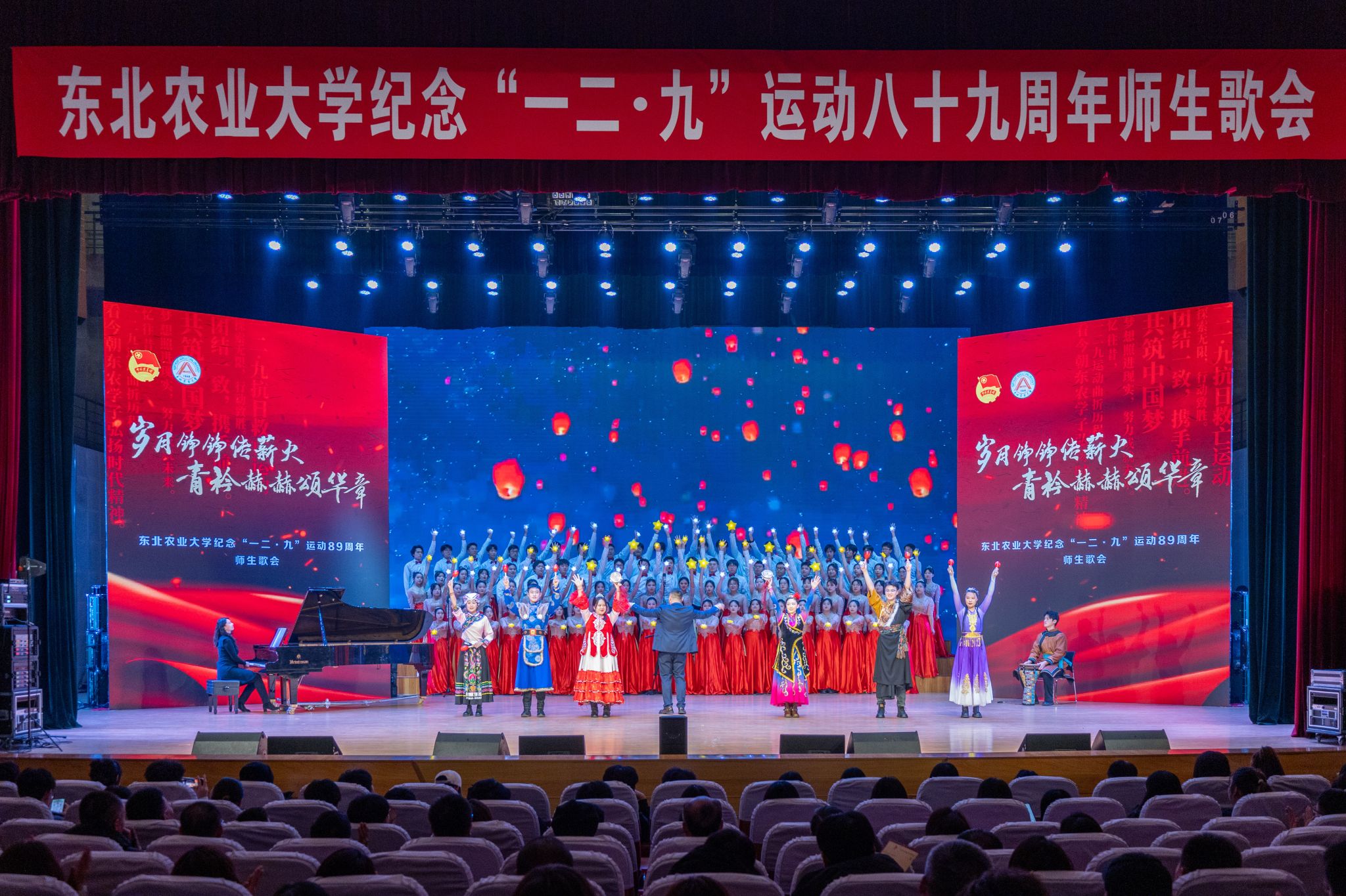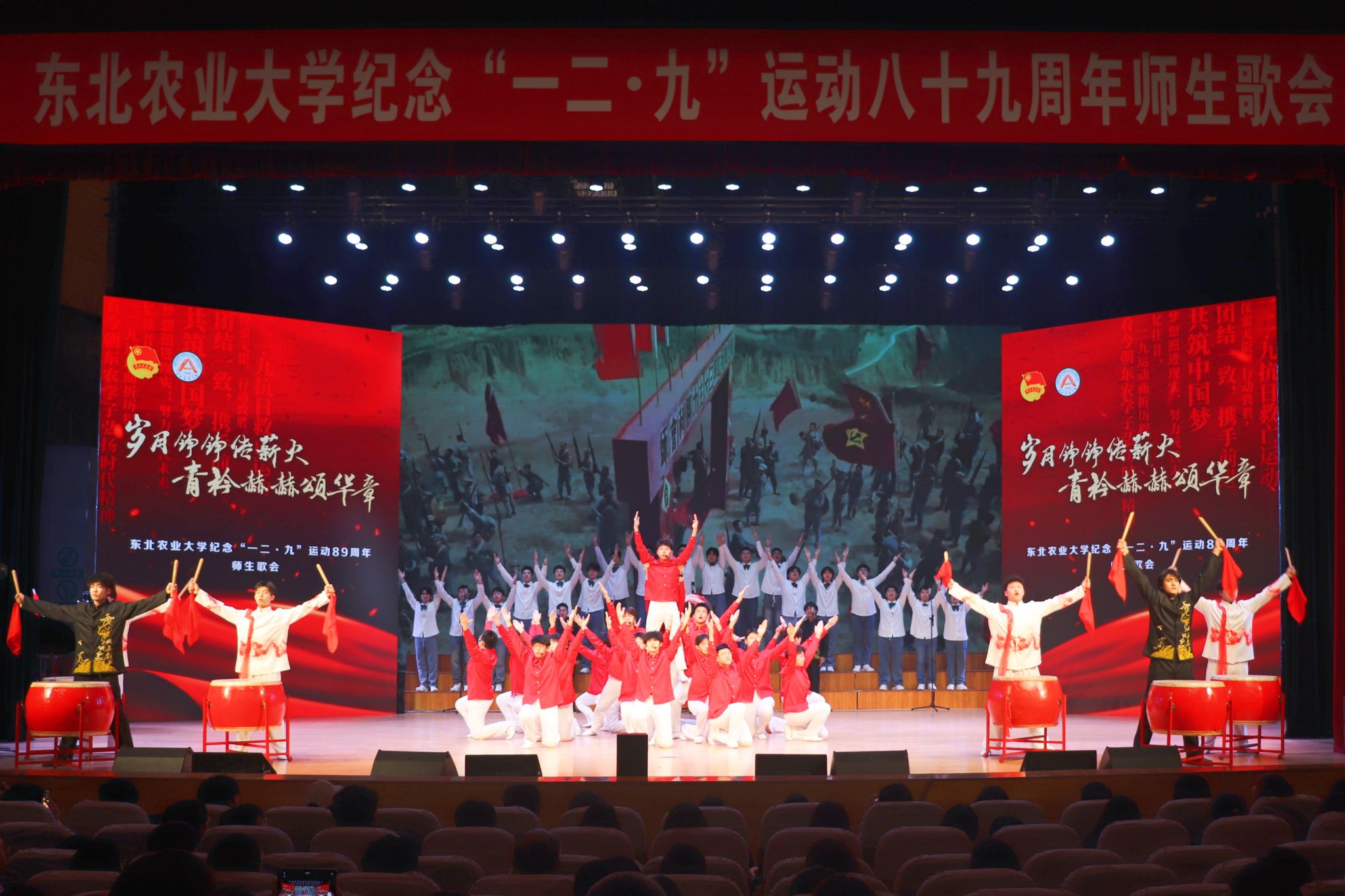 12月9日,我校在音乐厅隆重举办纪念“一二·九”运动89周年师生歌会。校党委书记付强,党委副书记贺景平,校纪委书记、省监委驻东北农业大学监察专员王艳春,统战部部长、省绿色食品科学研究院党委书记、院长高放,组织部部长吴立全,宣传部部长王博,学生工作部(学生处、武装部)部(处)长于兴业,招生就业处副处长吴立龙以及重庆市2024年区县党委教育工作领导小组办事机构负责人能力提升培训班学员出席本次活动。各学院党委书记、院长、党委副书记、团委书记、辅导员代表和学生代表等共计千余人到场观看,线上同步直播,观看人次达7.5万。