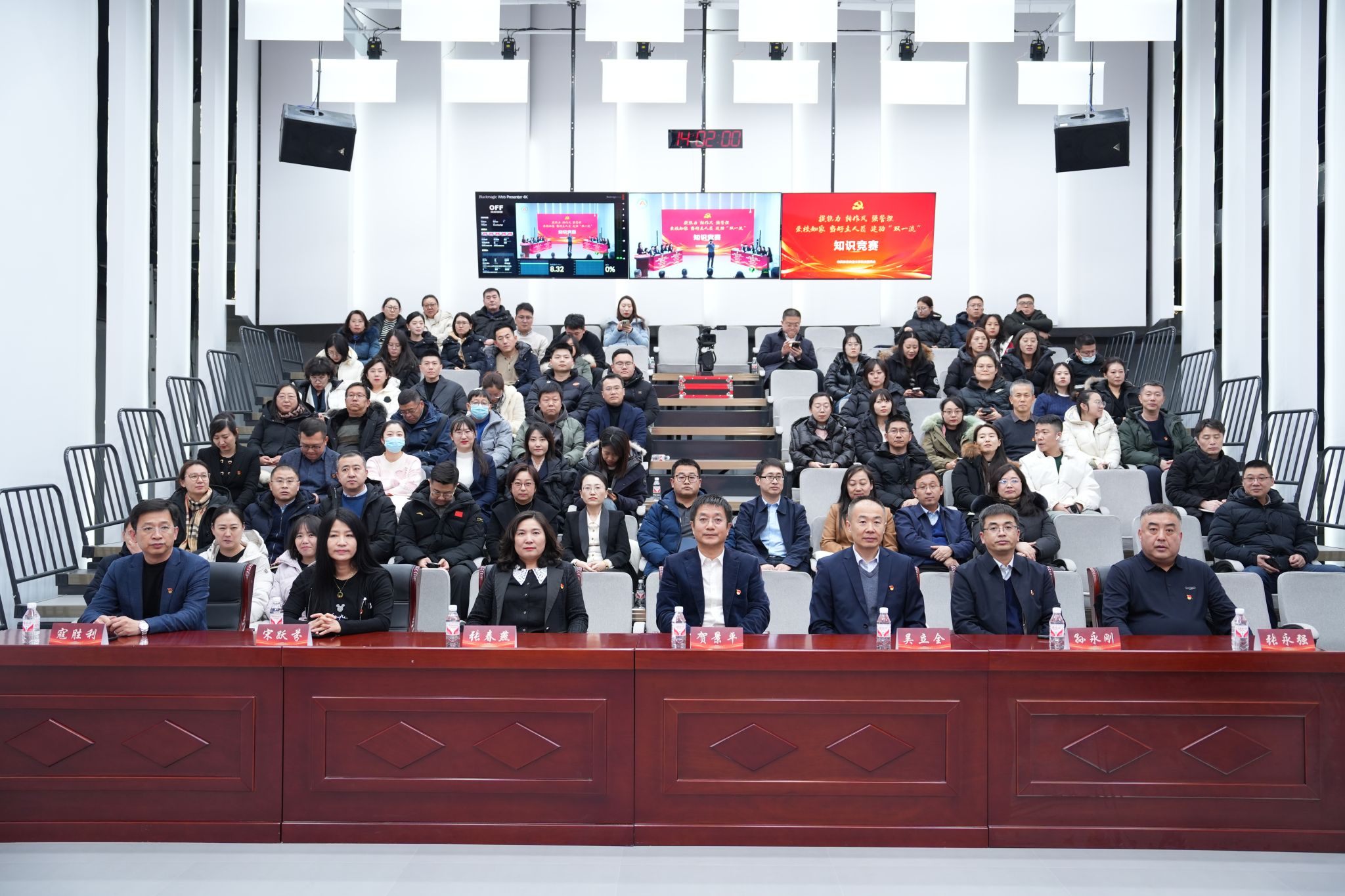 为庆祝中华人民共和国成立75周年,深入贯彻落实学校两个“三年行动”,推动机关广大青年干部做到学思践悟、知行合一,按照学校深化能力作风建设“抓基层、打基础、强落实、见实效”工作部署,12月23日下午,机关党委在艺术楼多功能演播厅举办“提能力 转作风 强管理 爱校如家 当好主人翁 建功‘双一流’”知识竞赛决赛。学校党委副书记贺景平参加活动并讲话,机关党委委员、机关各单位代表以及机关党委青年理论学习小组全体成员参加活动。知识竞赛由继续教育学院、现代教育技术中心提供技术支持,由机关党委青年理论学习小组成员学生工作部付婧一、人事处侯星宇主持。