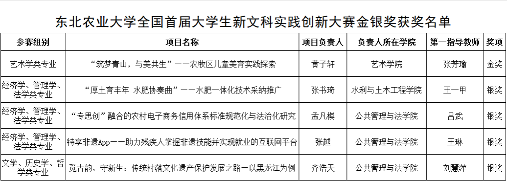 东北农业大学将以此次大赛为契机,进一步深化新文科实践创新教育教学改革,开拓实践育人新空间新阵地,积极开展实践创新活动,鼓励学生深入社会基层了解国情民生,提出新问题、使用新方法、形成新成果,切实提升发现问题、分析问题和解决复杂问题的能力,努力培养更多具备创新思维和实践能力的高素质人才。学校将继续加大学生参与各类专业竞赛支持力度,为他们搭建更广阔的展示才华与实现梦想的平台,不断提升学校人才自主培养质量。