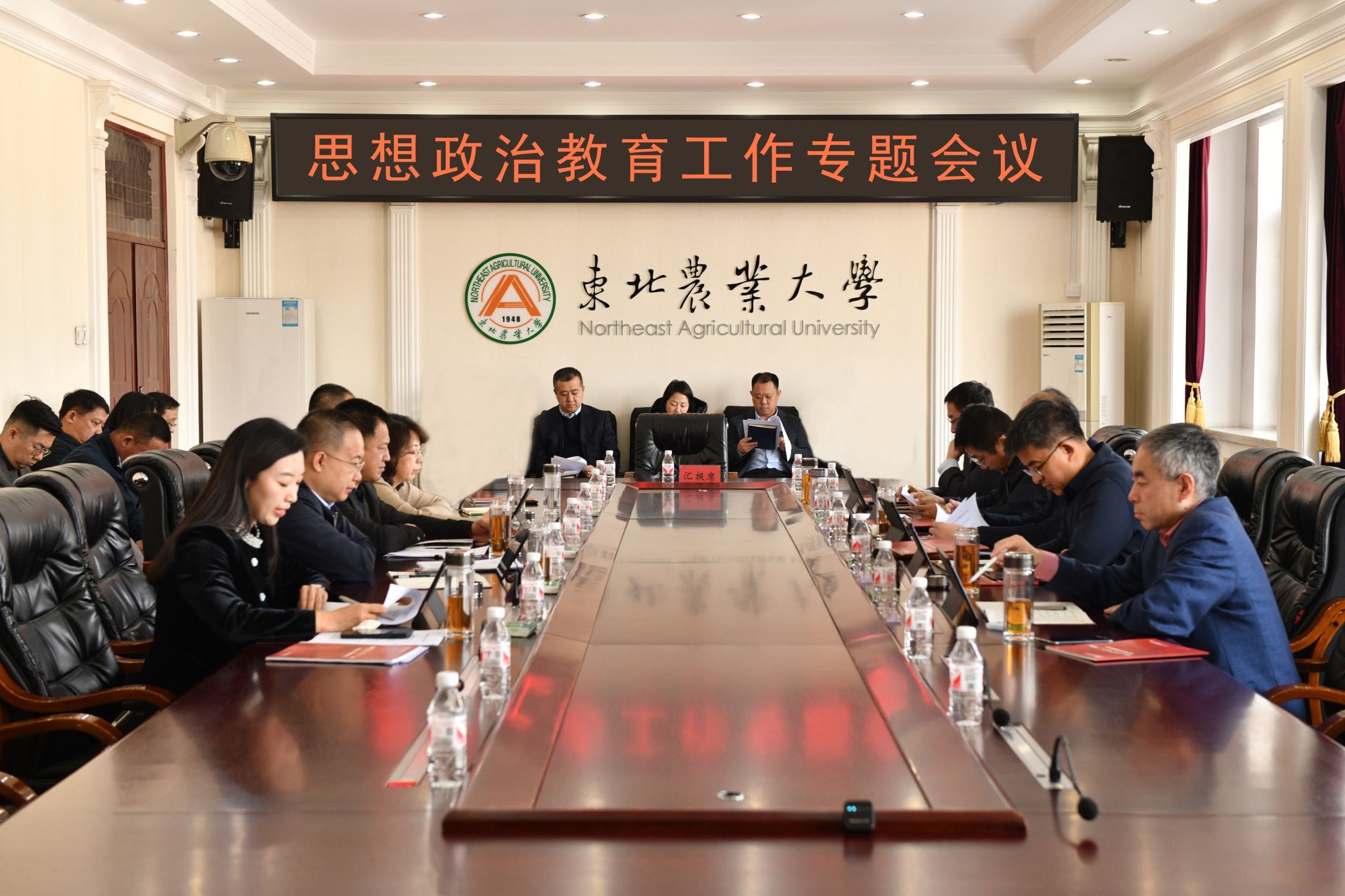 为深入学习党的二十届三中全会和全国教育大会精神,贯彻落实习近平总书记对学校思政课建设作出的重要指示,进一步加强和改进学校思想政治教育工作,完善“大思政”工作体系,12月25日,东北农业大学召开2024年思想政治教育工作专题会议,深刻领会加强和改进新形势下思想政治教育工作的重要意义,全面总结学校2024年度思想政治教育工作的进展成效,提出下一阶段学校思想政治教育重点工作思路并作工作部署。校党委书记付强主持会议并讲话,校党委副书记、校长刘竹青,在校校领导、相关职能部门负责人参加会议。
