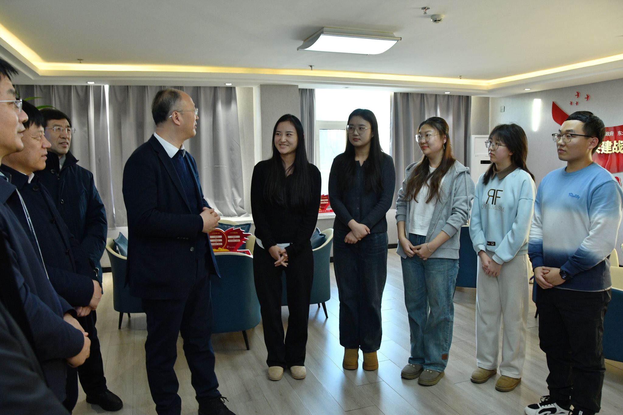 在甘南县人才公寓,付强跟随工作人员回顾了校县近十年的合作历程,浏览了东农驻村干部、专家团队、莘莘学子扎根甘南,谋划产业发展,赋能地方需求,培育专业人才的工作剪影,对学校社会服务队伍十年如一日对甘南的坚守给予高度评价。面对甘南东阳小浆果科技小院硕博团队时,付强提到了习近平总书记给中国农业大学科技小院的学生回信中“在乡村振兴的大舞台上建功立业,为加快推进农业农村现代化、全面建设社会主义现代化国家贡献青春力量”的谆谆教诲,嘱托他们“既要志存高远, 又要立足当下, 既能深入田野, 又能挥洒汗水”,鼓励他们投身基层广阔天地, 深刻体悟东农精神,把论文写在甘南的大地上。