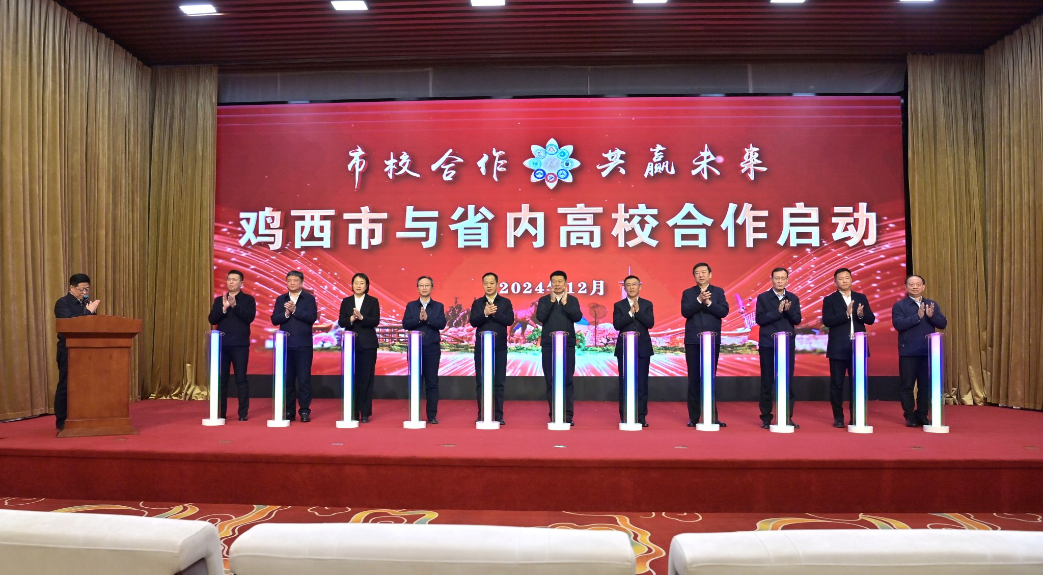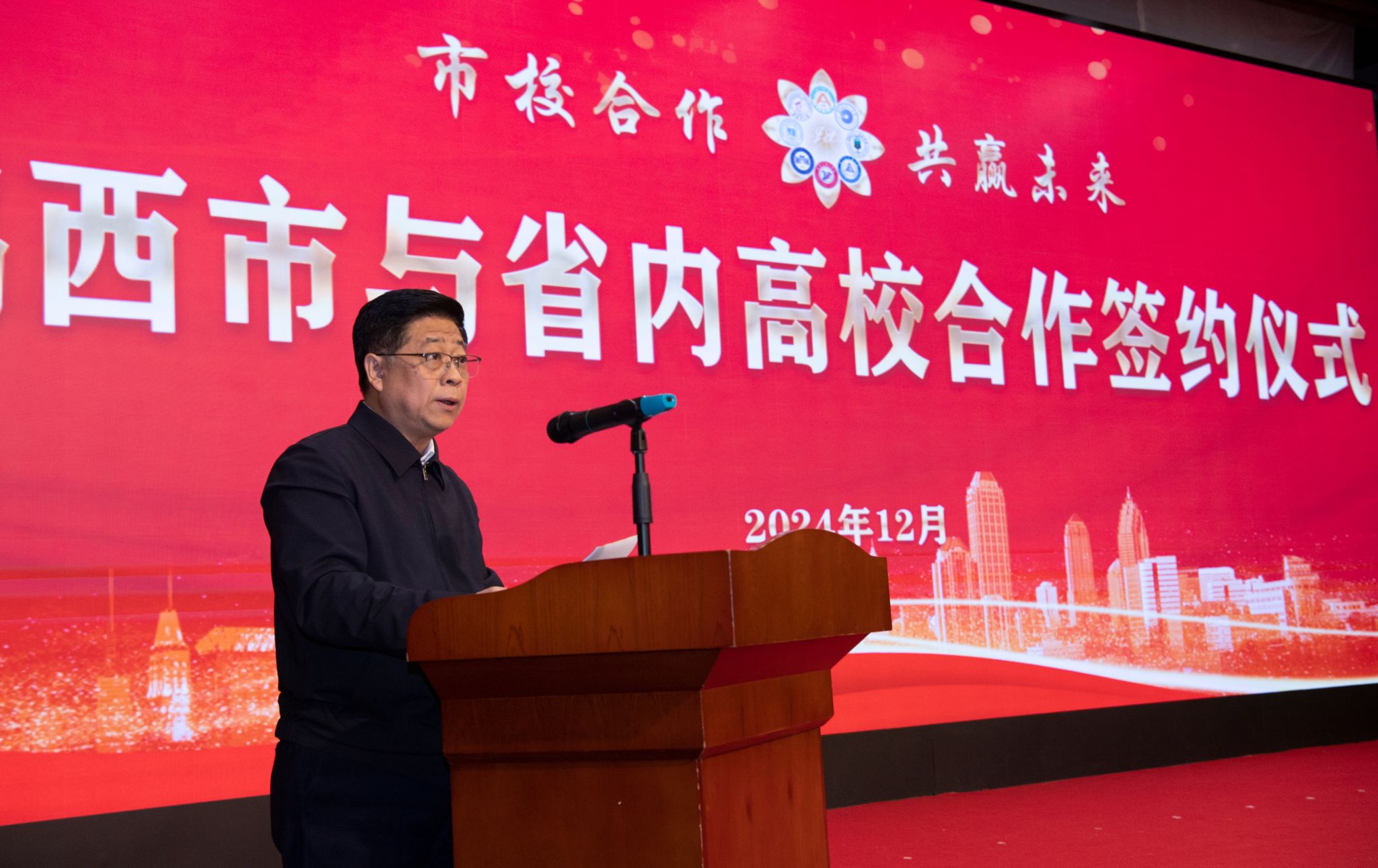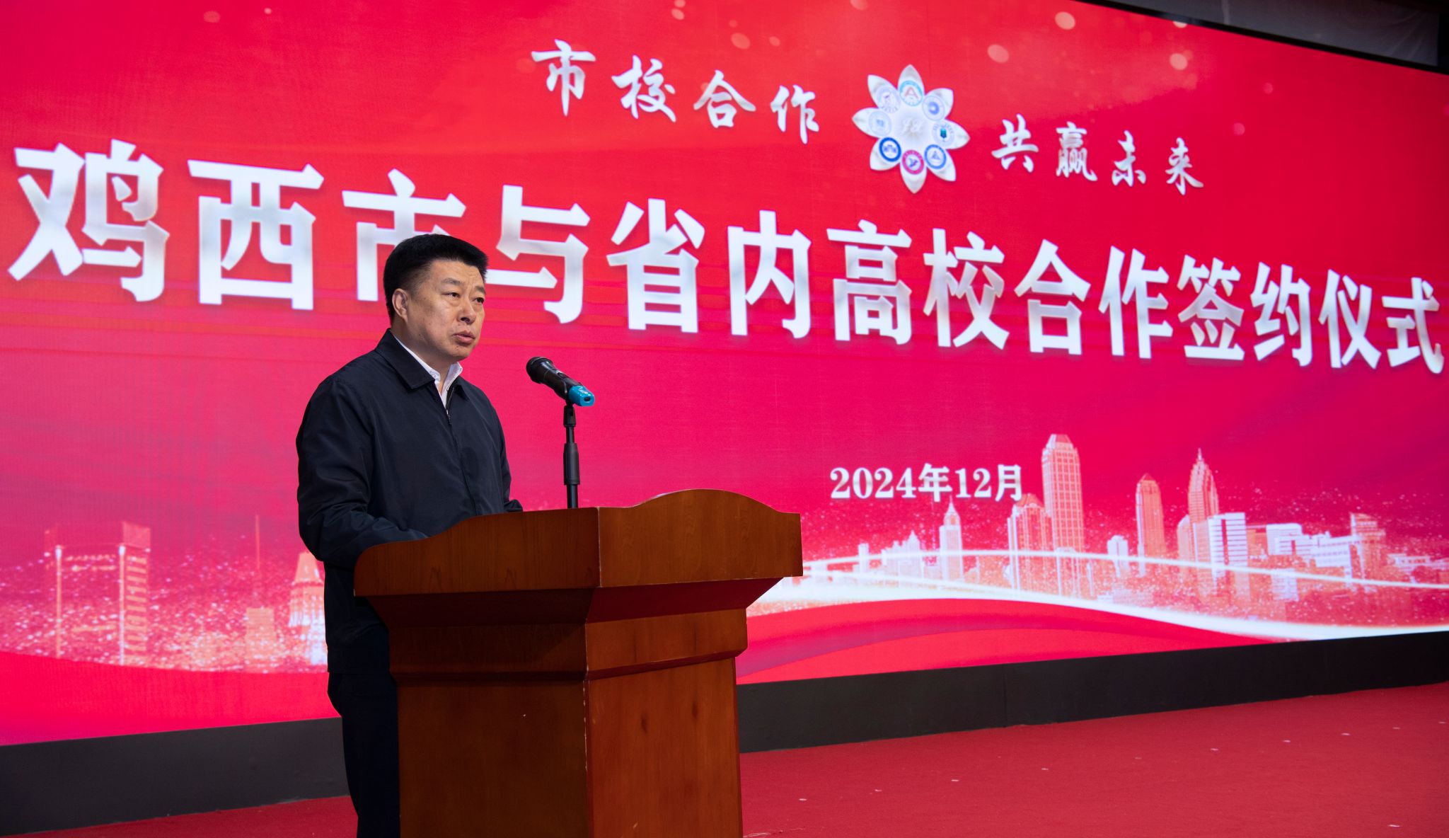 鲁长友代表市委、市政府向省委教育工委、省委组织部和8所省内高校各位领导的到来表示诚挚欢迎,向长期以来对鸡西高质量发展给与的关心、支持和帮助表示衷心感谢。他表示,鸡西正处于转型发展的关键时期,聚力打造龙江“智谷”“碳谷”,迫切需要智力支持、人才支撑。他希望,鸡西市与各高校共谋智库建设之新策,用智慧之光点亮鸡西大地,用科创之力点燃发展激情。共商科技创新之新径,发展以高技术、高效能、高质量为特征的生产力。共闯产业振兴之新路,合力培育和发展新质生产力。共开人才引育之新局,开创人才辈出、人尽其才的良好局面。共绘社会发展之新篇,助力幸福鸡西建设。鸡西市将以最大诚意落实协议,以最高效率促进合作,以最好服务强化保障,用“双向奔赴”创造美好未来,用“双向赋能”谱写精彩华章。