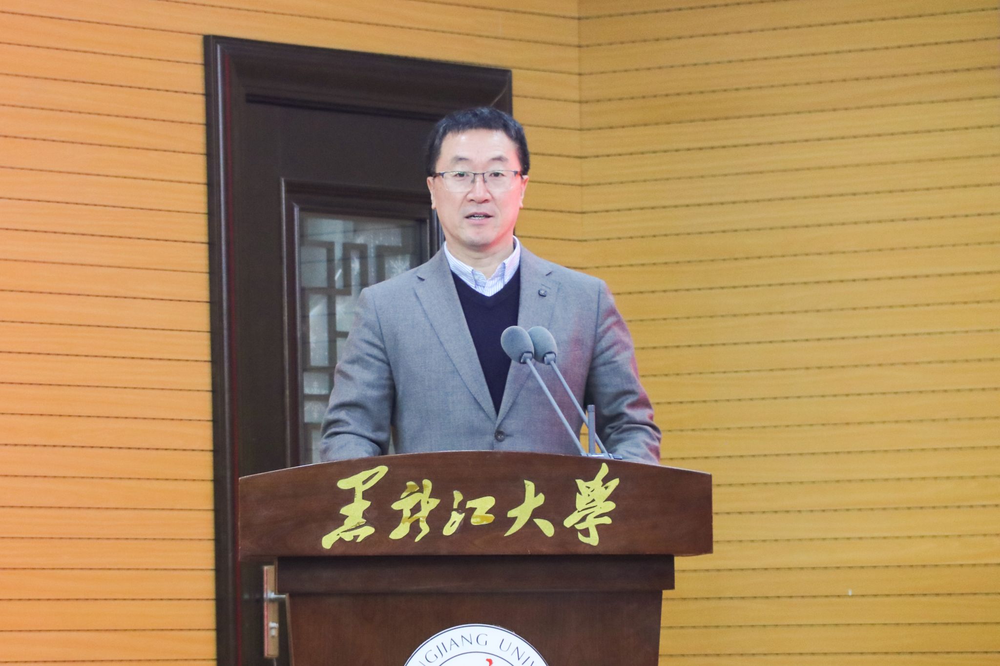 1月21日,由黑龙江省教育厅主办的黑龙江省新文科教育联盟成立大会暨全省首届大学生新文科实践创新大赛颁奖典礼在黑龙江大学隆重举行。教育部高等教育司副司长武世兴,全国新文科教育研究中心执行主任仝兴华,省教育厅副厅长程爽,全省新文科教育联盟成员单位领导及专家委员会成员、全省本科高校教务处负责人、文科类院系负责人、教师及学生代表参加大会。我校副校长刘忠华、教务处处长杜国明、优秀指导教师吕武及部分师生代表现场参会。