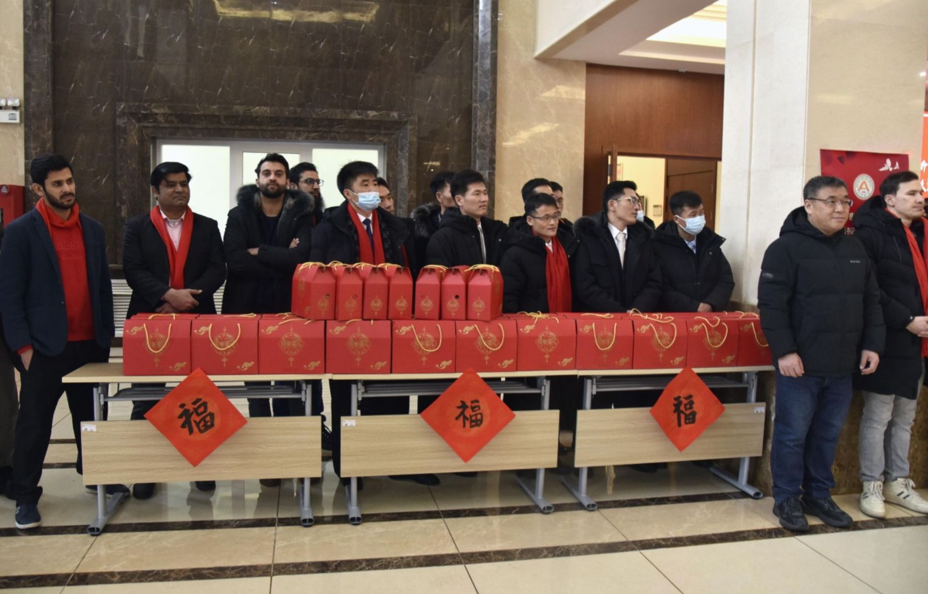1月26日农历腊月二十七,在中华民族传统节日春节来临之际,副校长陈庆山亲切看望慰问了在校过春节的留学生,向他们致以新春的美好祝福。