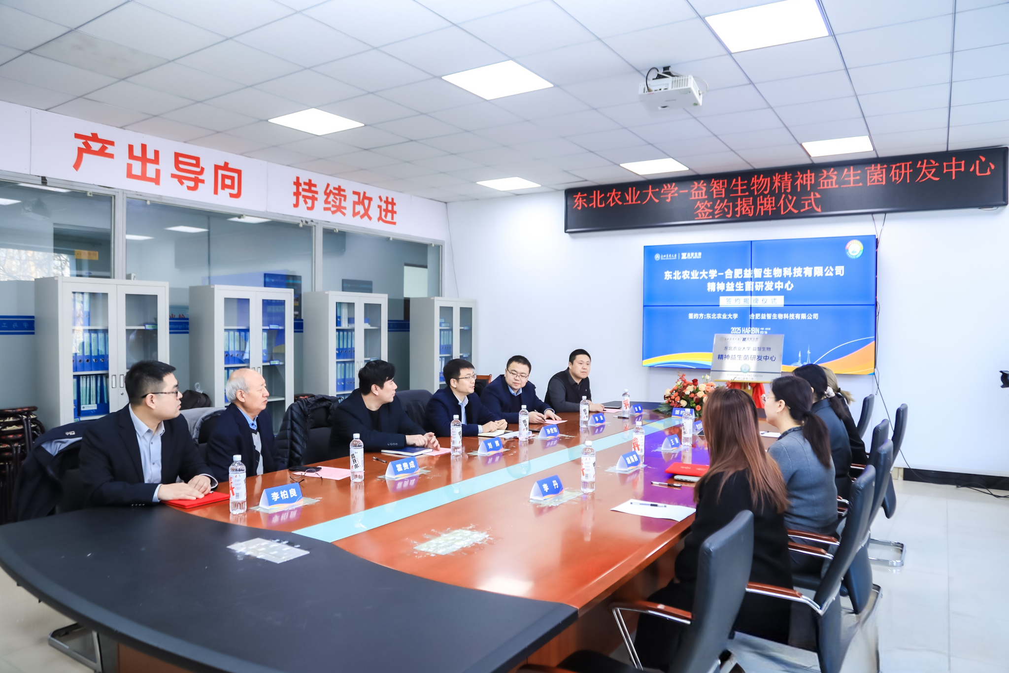 2月16日上午,东北农业大学与合肥益智生物科技有限公司共建“东北农业大学益智生物精神益生菌研发中心”签约揭牌仪式在我校举行。合肥益智生物科技有限公司总经理王娴、副总经理胡海燕、运营部经理尹文静、宣传部经理李丹,我校副校长孙世钧、食品学院院长李良、副院长刘骞、学院教授霍贵成、李柏良、社会合作与成果转化中心(新农村发展研究院)副主任(副院长)刘辉参加了签约揭牌仪式。签约揭牌仪式由刘辉主持。