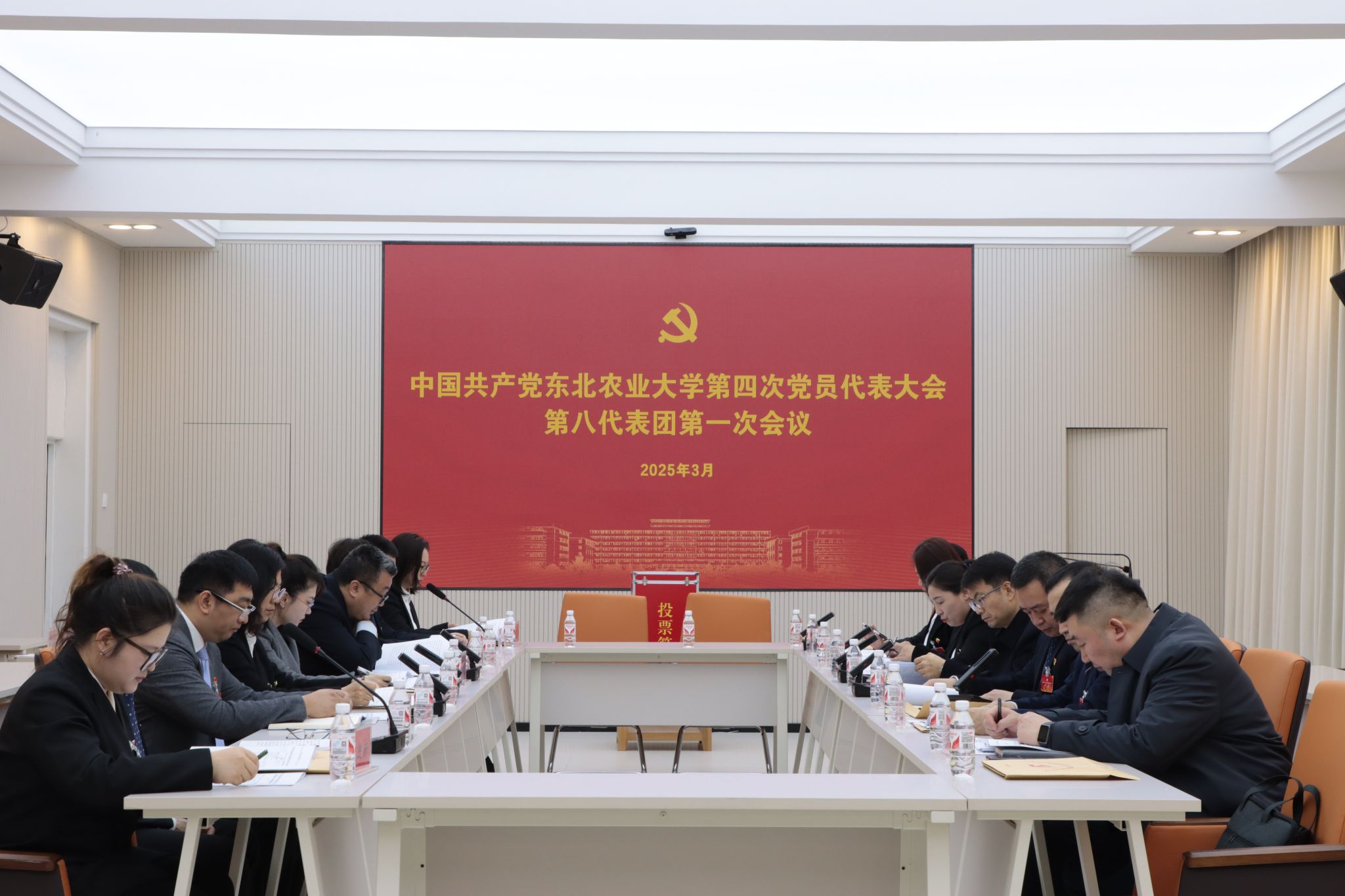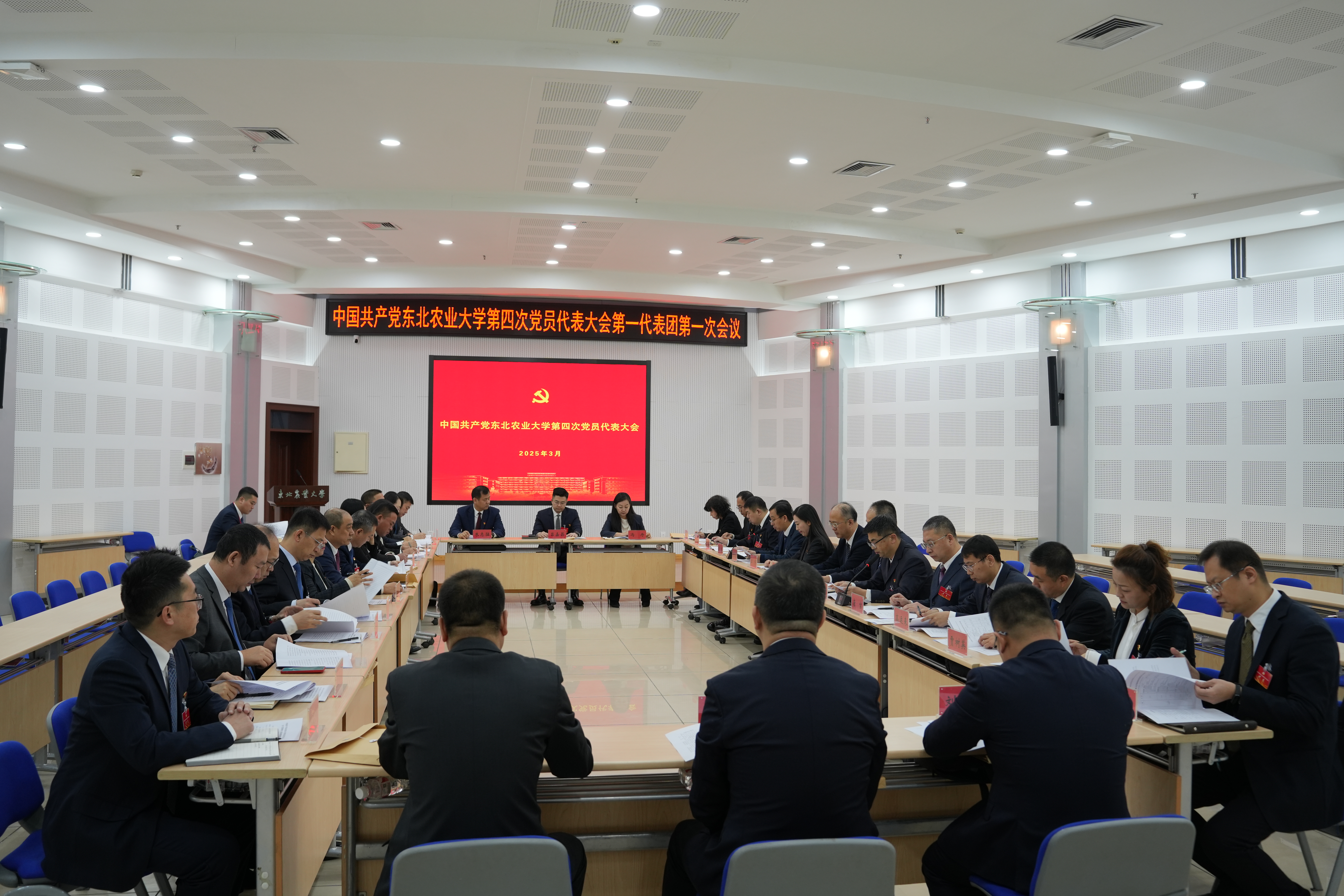 3月13日上午8:00,中国共产党东北农业大学第四次党员代表大会代表团举行第一次会议。会上,各代表团召集人传达了3月12日下午召开的代表团召集人会议精神。各代表团会议分别通过了代表团团长、副团长建议名单,并指定了代表团联络员,审议了代表资格审查报告(草案)、党费收缴、使用和管理情况报告(草案)和大会议程(草案),酝酿了大会主席团成员和秘书长建议名单。