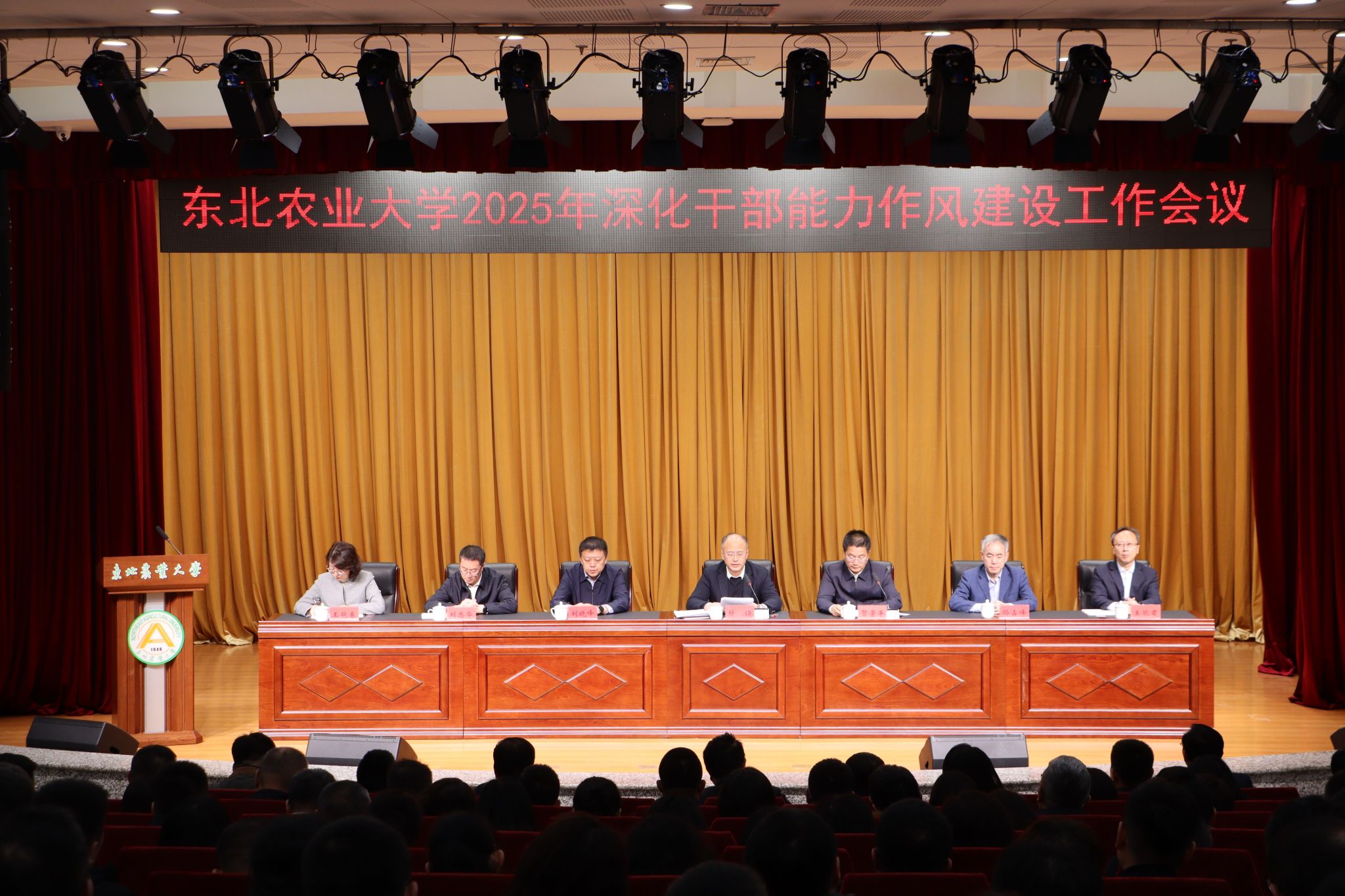 3月26日,我校召开2025年深化干部能力作风建设工作会议。全体校领导,全校正、副处级干部及全校行政管理岗位正、副科级干部在图书馆一楼报告厅参加会议。校党委副书记贺景平主持会议。