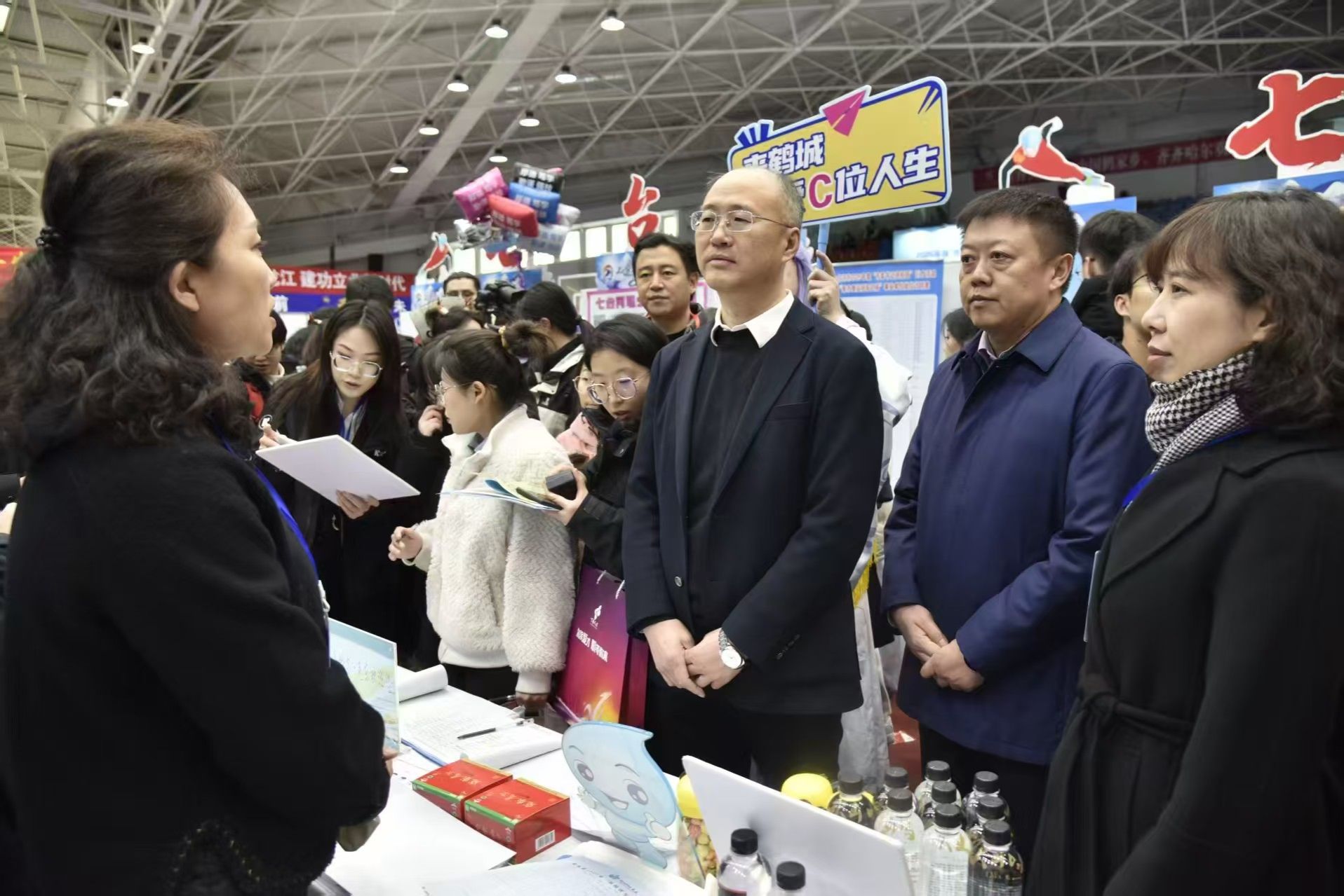 学校始终将做好毕业生就业工作作为服务国家战略和龙江振兴的重要抓手,深入落实就业工作“一把手”工程,校党委书记和校长牵头挂帅、高位推动,多个职能部门保障落实。形成了学校党委统一领导、分管校领导和招生就业处统筹组织、学院主体落实、相关部门协同联动、全校师生积极参与的立体协同就业工作格局。招聘会现场,校党委书记付强与各市(地)人才工作负责人及用人单位代表深入交流,对用人单位来校延揽人才表示欢迎,详细调研了解了企业人才需求和对学校人才培养及学生就业工作的意见建议,询问关心参会学生求职进展情况,鼓励毕业生主动出击,把握机会,尽早就业。