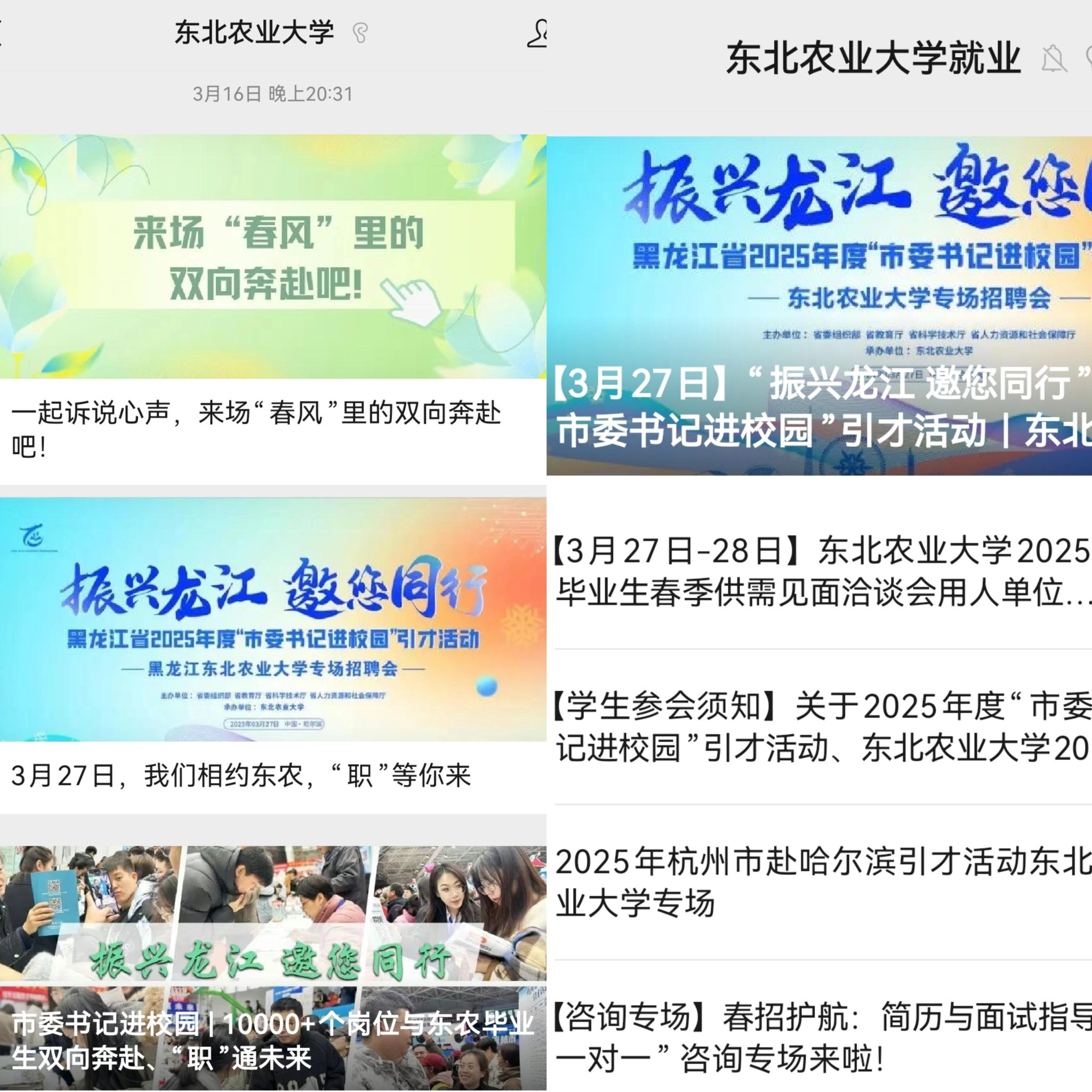 春雪润泽黑土地,人才涌动东农园。3月27日、28日上午,我校体育馆人头攒动、热闹非凡。一场就业盛会——东北农业大学2025届毕业生春季供需见面洽谈会在学校体育馆火热开场。本次招聘会以“才聚东农·职通未来”为主题,吸引省内外300余家优质企事业单位参会,涵盖农业科技、食品加工、生物医药、信息技术等领域,提供岗位1万余个。