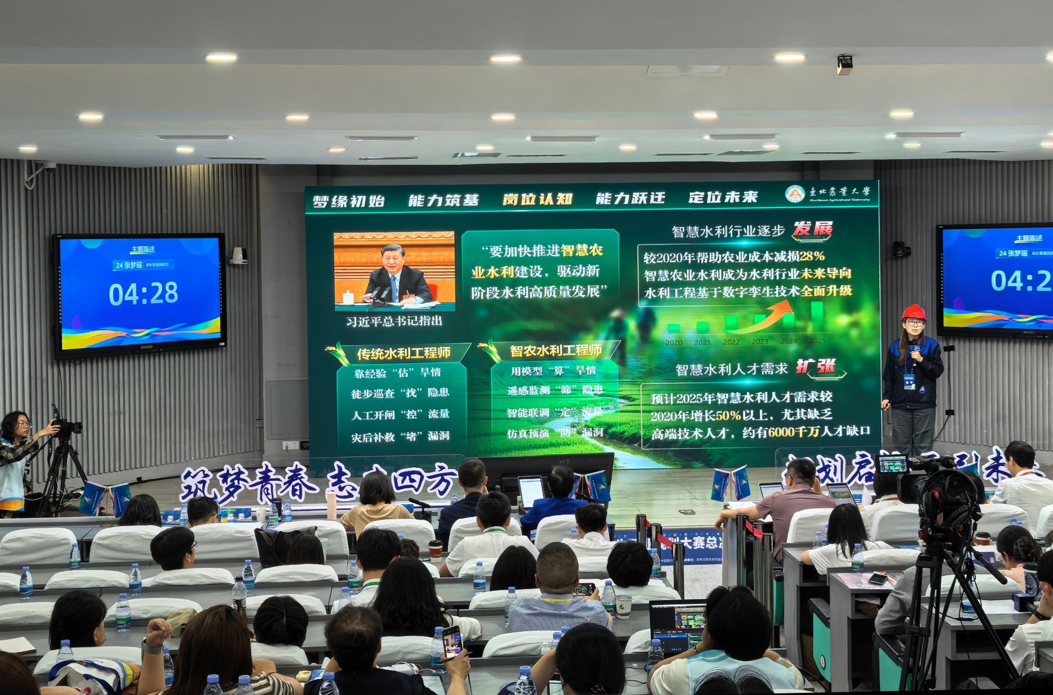 我校参赛选手张梦瑶以“寒区智慧农业水利工程师”为求职目标,以“三代水利人,拿下寒地智高点”为主题,在深耕寒区水利科技创新能力的同时,关注智慧水利前沿技术,着力破解高寒农业水利难题,彰显新时代农业水利工程师服务国家粮食安全与生态屏障建设的专业担当。在主题陈述与评委提问环节,充分展示了东农学子深厚的学科积淀和出色的职业综合素养,赢得评委高度评价。