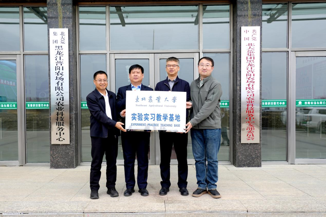 农学院党委书记李晓书、副院长刘鑫为普阳农场有限公司实验实习教学基地授牌。