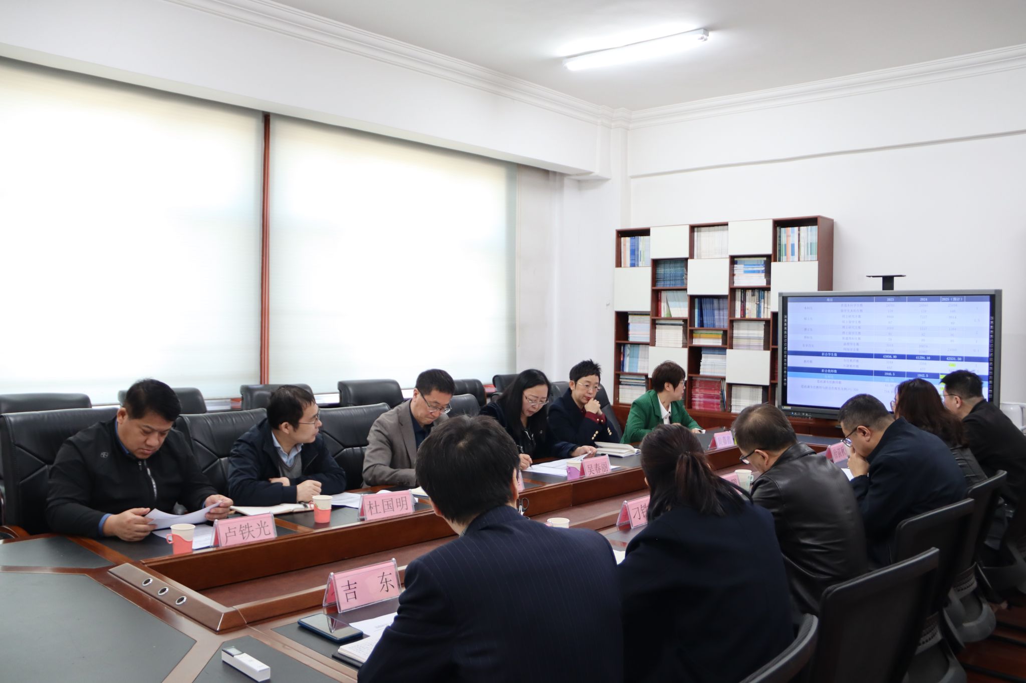 会上,黄嘉鑫介绍了学校审核评估整改攻坚专班工作开展情况,对学校近年来“生师比”变化发展情况、现阶段存在的困难进行说明。学校“生师比”面临学生数持续增长、师资缺口较大的双重压力,优化难度较高。各单位负责人围绕专任教师和思政课教师专项引进政策,教师资源配置调整,本科生、研究生、留学生、学历继续教育学生等招生规模、招生政策等核心问题,深入剖析难点并研讨攻坚目标与改进路径。