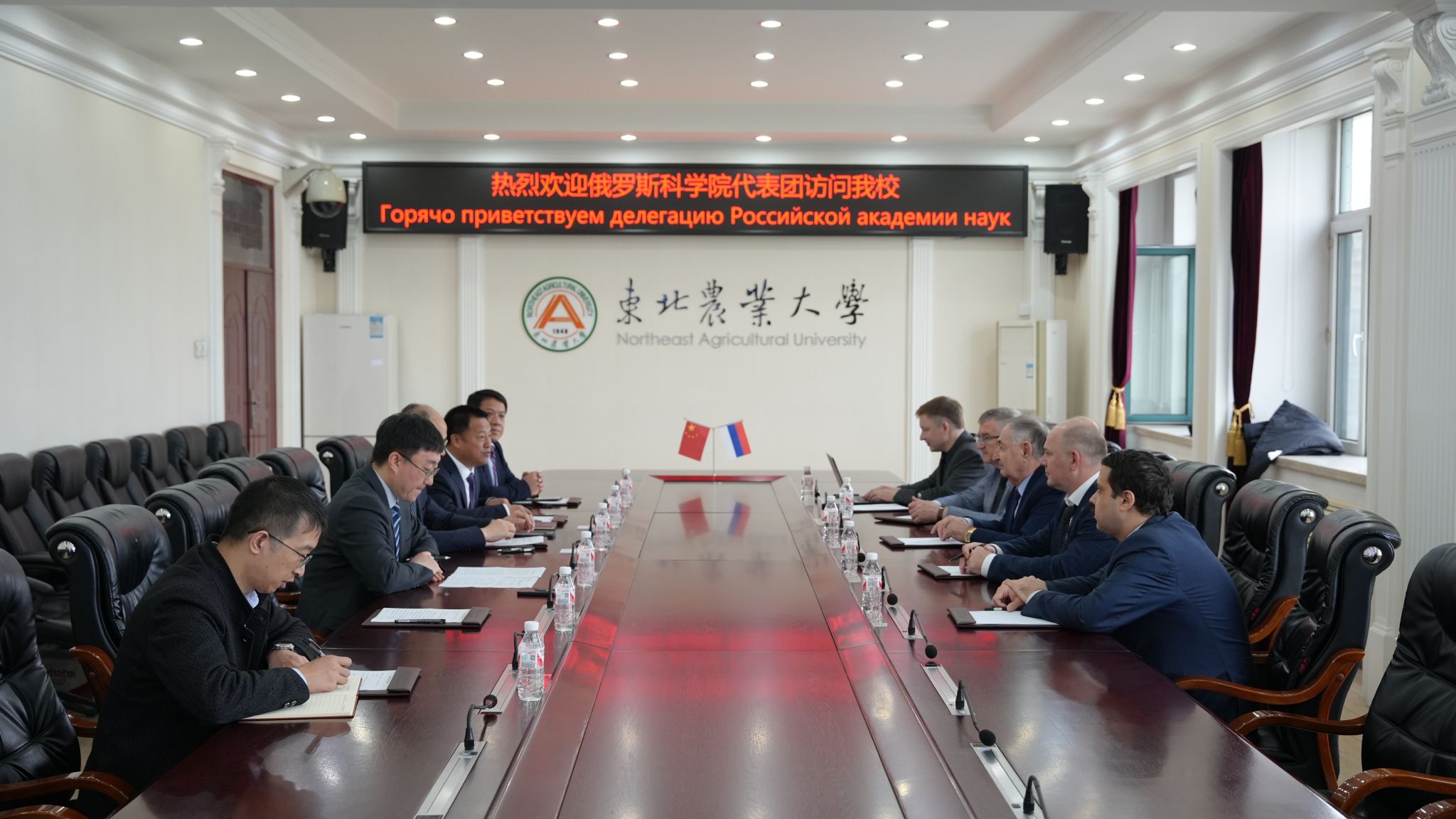付强对代表团的到访表示热烈欢迎。他指出,东北农业大学与俄罗斯农业高校和科研机构合作渊源深厚,学校依托国家“一带一路”倡议,始终将对俄合作作为国际化发展的重要方向,希望双方在巩固学生派出机制基础上,进一步深化科研项目协同攻关,围绕中俄政府间重点科研合作项目,在寒地作物育种、智慧农业装备研发等领域开展联合研究,共同打造国际农业科技合作新高峰。