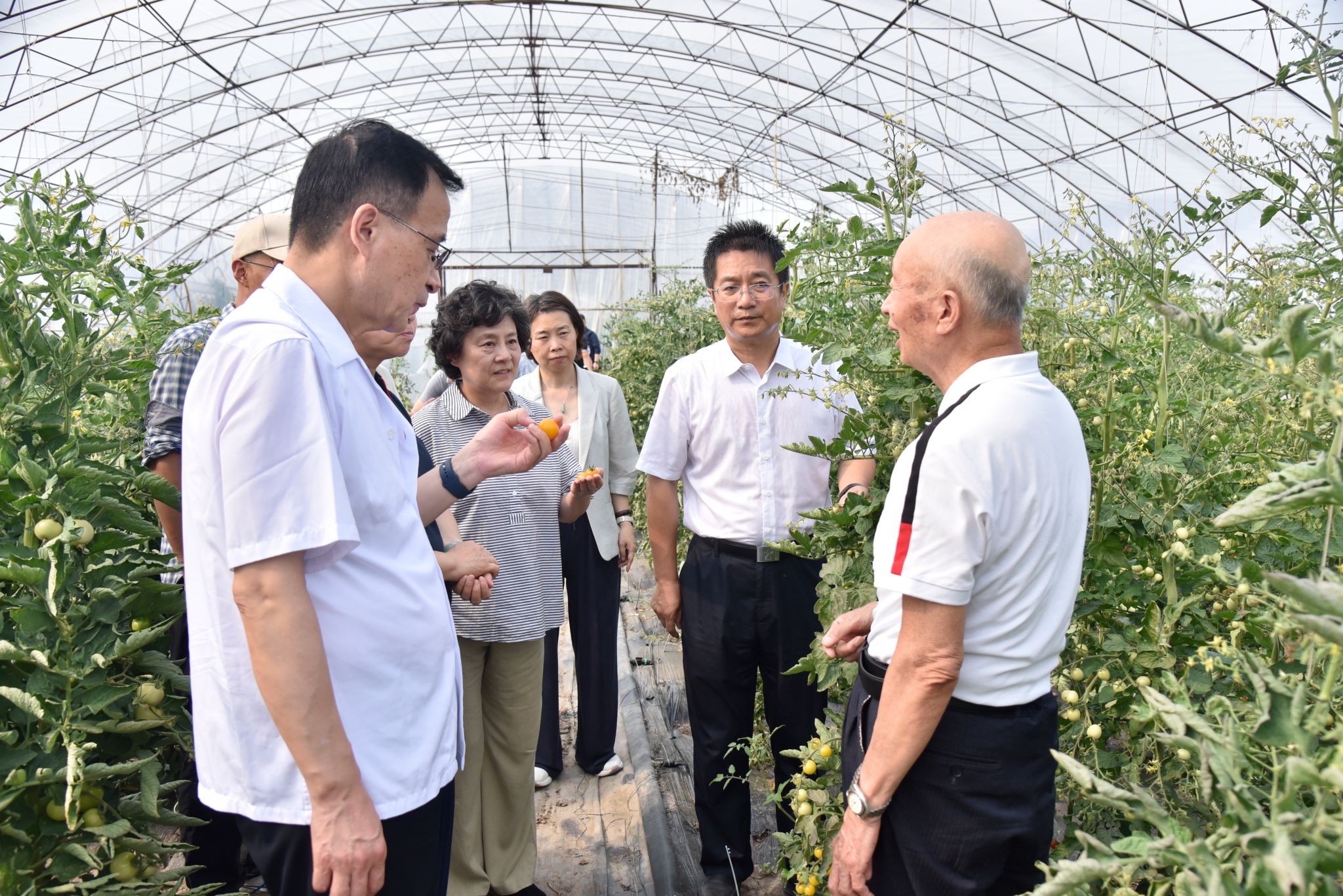 在向阳基地实地考察中,蔡敏勇一行重点参观了李景富教授科研成果展示区及番茄种植温室大棚。蔡敏勇结合考察情况建议基地可探索围绕数字化、绿色化、资本化、园林化建设及成果转化多点布局等合作方向,为校地协同发展提供新思路。