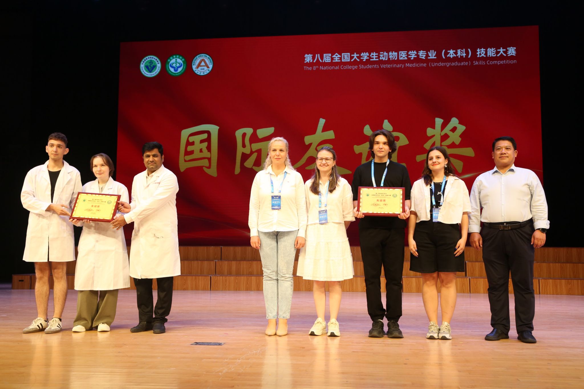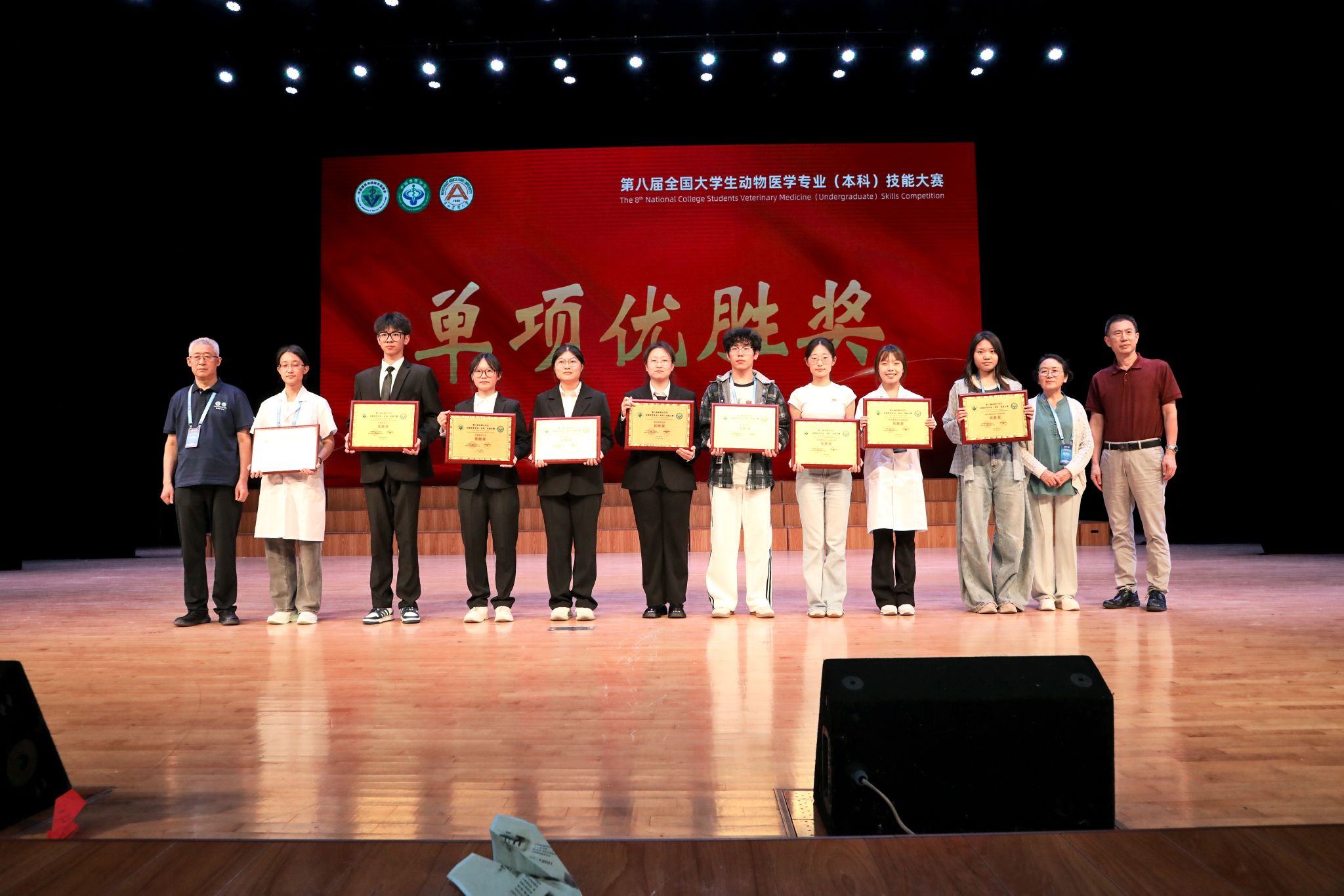 经过两天激烈角逐,东北农业大学、吉林大学、南京农业大学等12所高校获得特等奖;湖南农业大学、浙江大学、四川农业大学等22所高校获得一等奖;江西农业大学、扬州大学、华中农业大学等35所高校获得二等奖;其中东北农业大学、黑龙江八一农垦大学、河南农业大学获得绵羊瘤胃切开术比赛单项优胜奖;浙江农林大学、吉林大学、南京农业大学获得禽的病理剖检比赛单项优胜奖;吉林农业大学、西南大学、东北农业大学获得病原菌检查与血凝试验比赛单项优胜奖;东北农业大学留学生代表队、圣彼得堡国立兽医大学获得友谊奖。