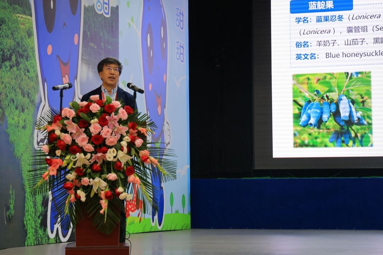 主题报告环节,霍俊伟围绕蓝靛果育种、栽培、采收、保鲜、加工、功能成分、医疗保健价值,以及国内外蓝靛果产业现状及发展趋势等全产业链作专题报告。